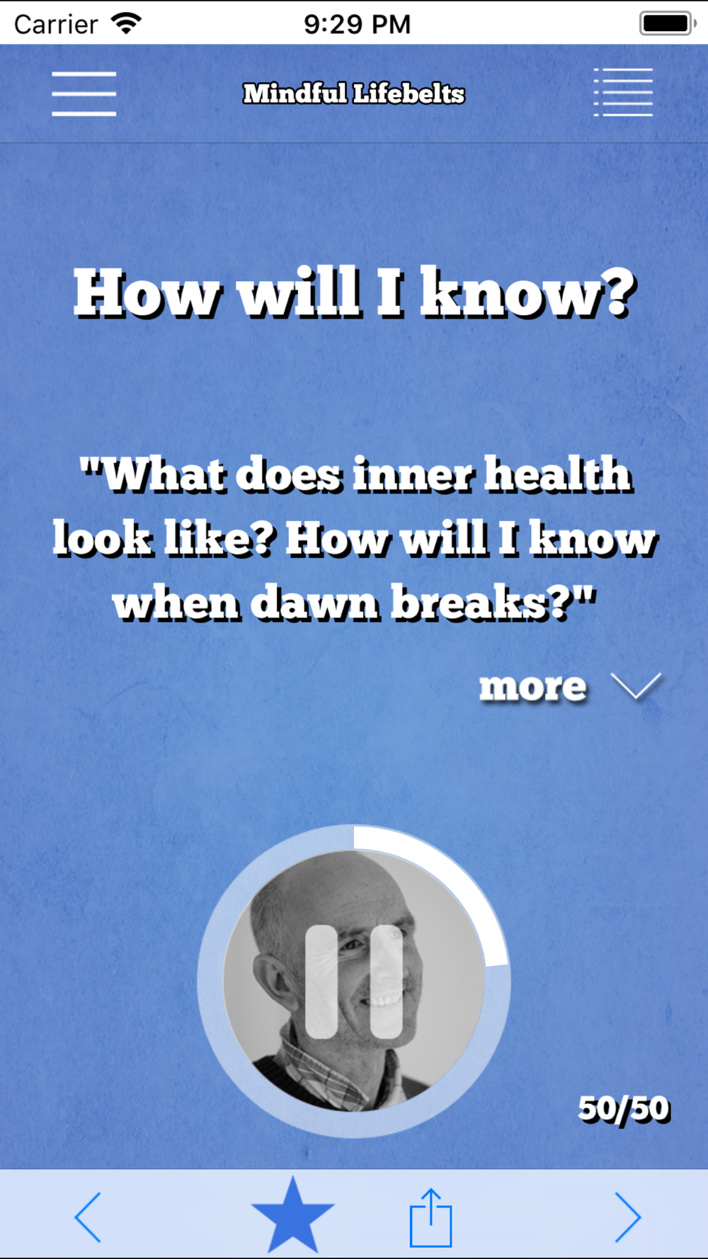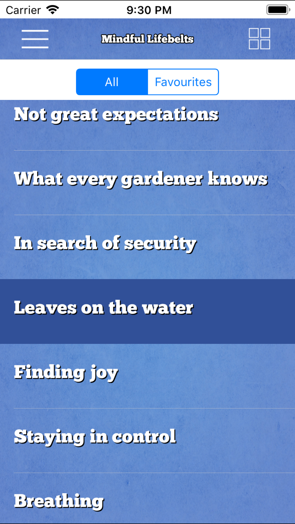 The mindful lifebelts in this app cover a spectrum of negative emotions which can hijack us at any moment; disappointment, anxiety, shame, regret and feeling empty and lost. Simon’s wisdom gently guides you through what to do with these emotions and how to replace them with more positive feelings such as self-acceptance, self-awareness, courage and trust.