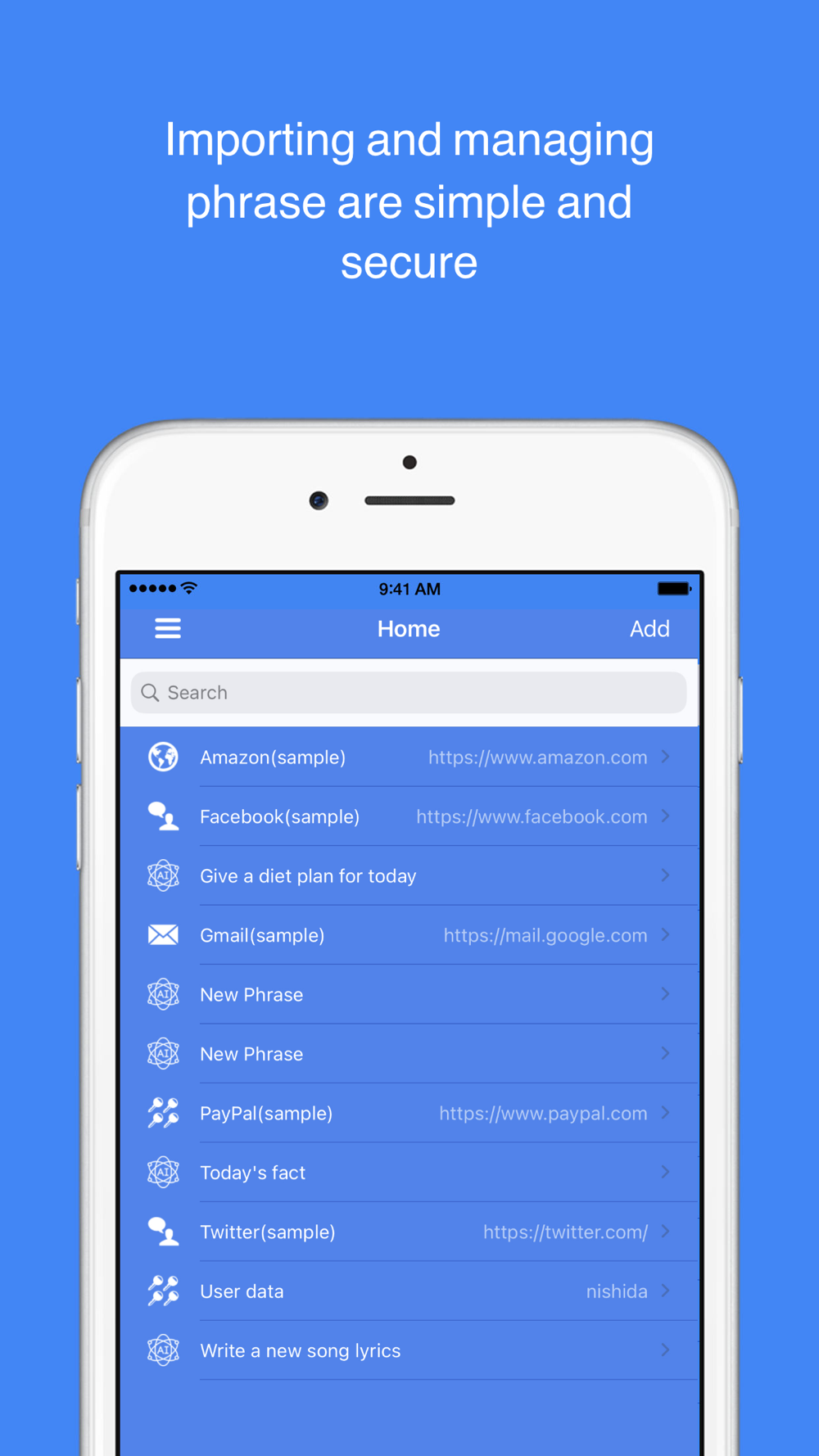 - Import passwords as CSV format from services like KeePass, Lastpass etc.