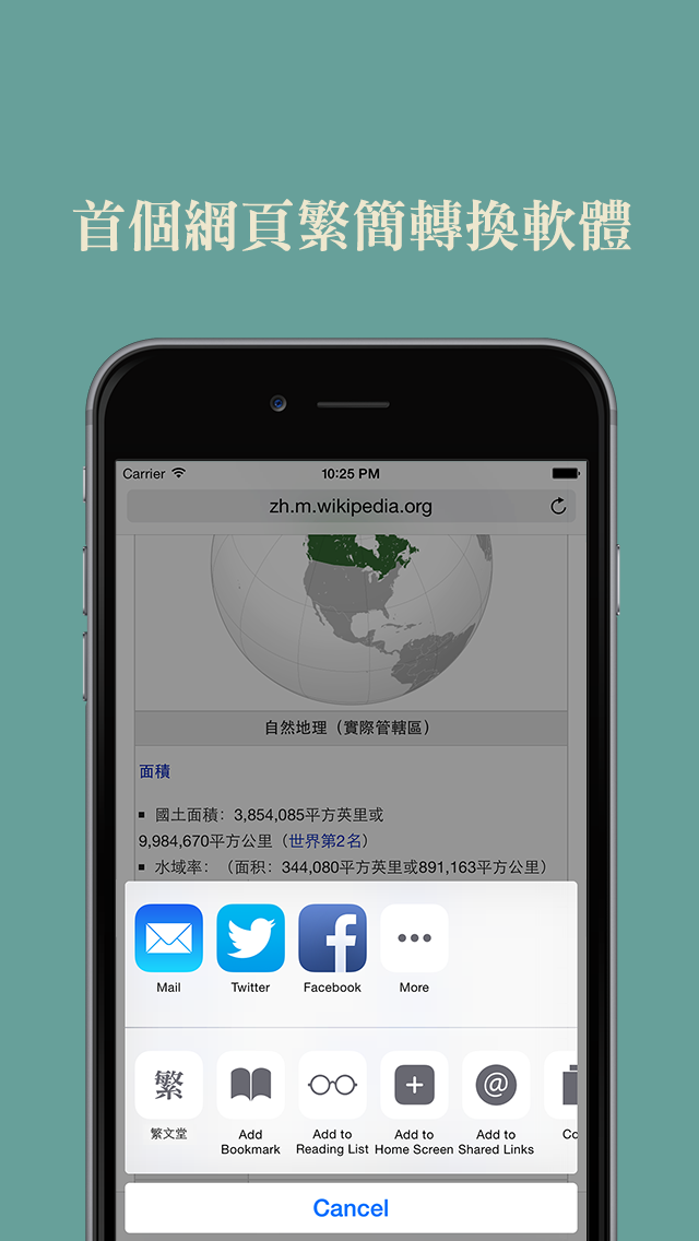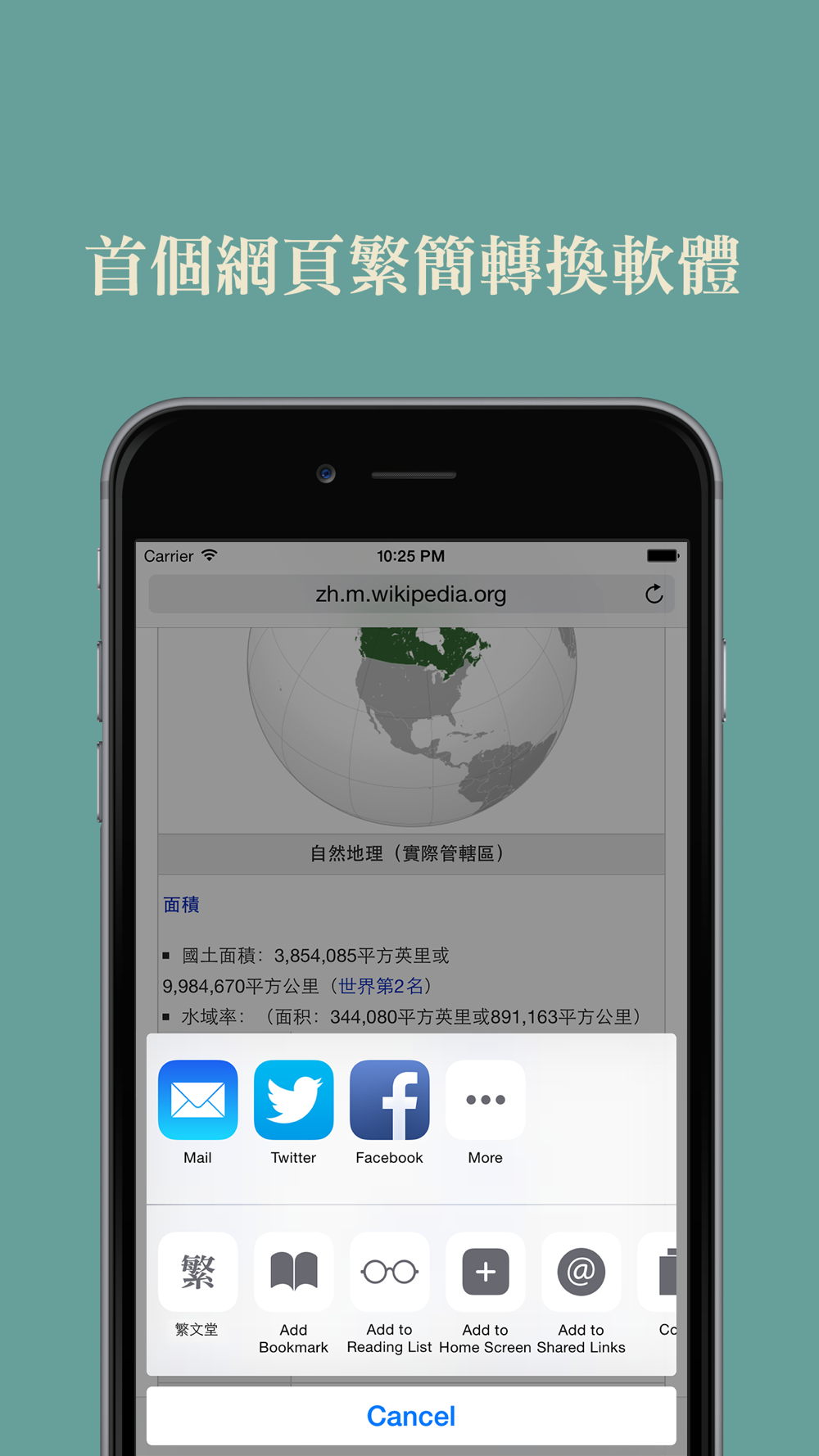 使家可透過Safari Action 把網頁內的簡體中文轉換成繁體中文