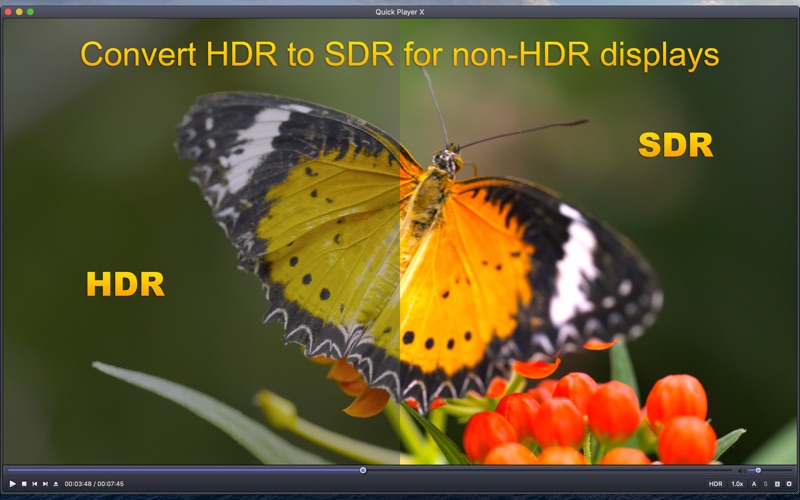 In order to correctly present HDR colors on non-HDR displays, Quick Player X provides the function of converting HDR to SDR. If your built-in display or external display supports HDR, you can turn off this feature.