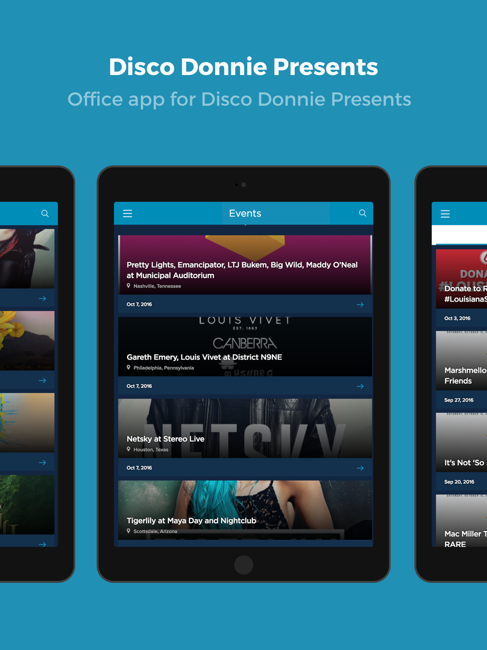 The official app for all Disco Donnie Presents events, concerts, and festivals throughout the United States, Canada, Mexico, and South America.