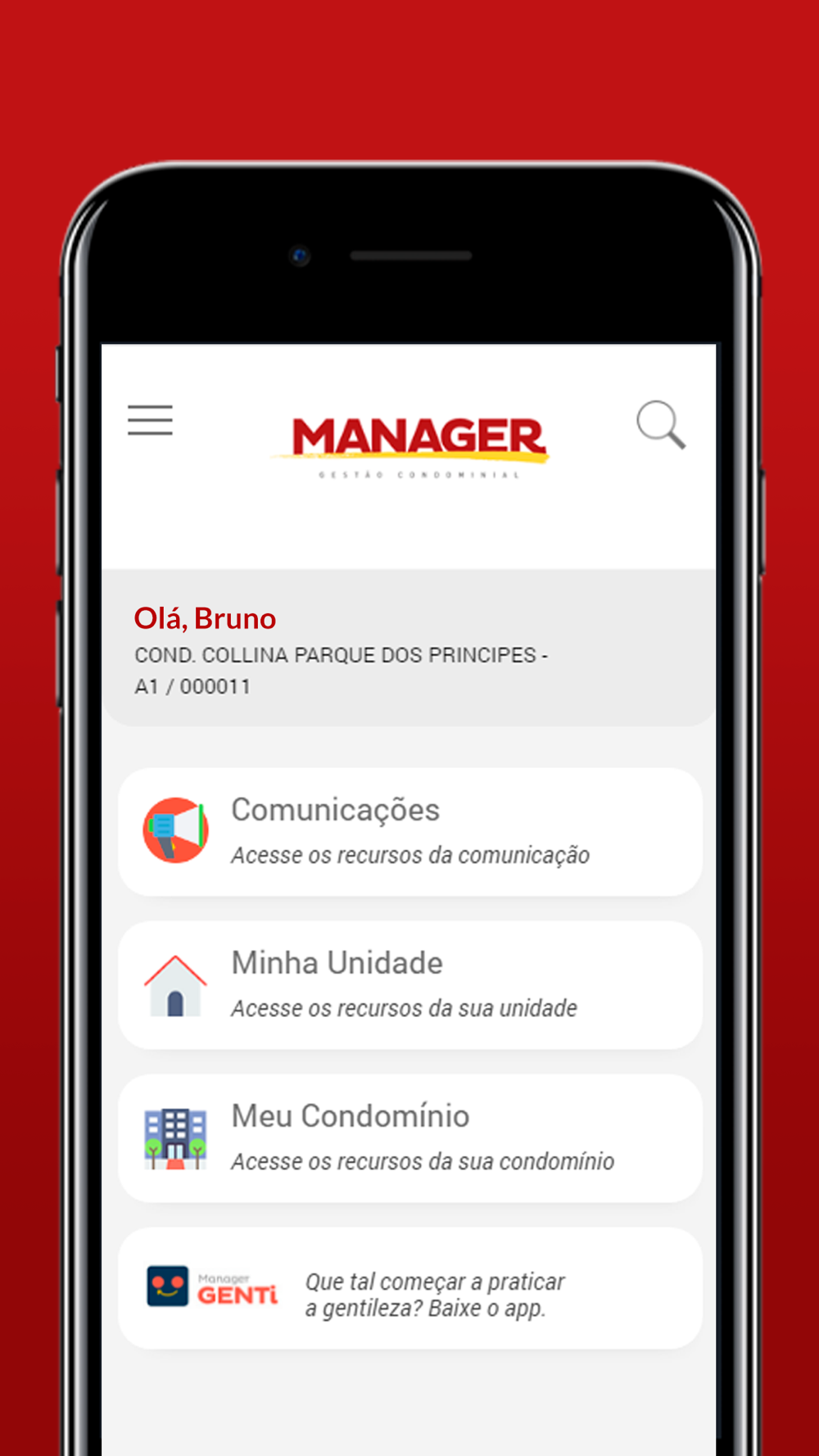 Com o aplicativo da Manager os clientes podem consultar as principais informações do condomínio, de maneira rápida e fácil. Uma ferramenta que oferece mais transparência e funcionalidade para que você economize tempo.