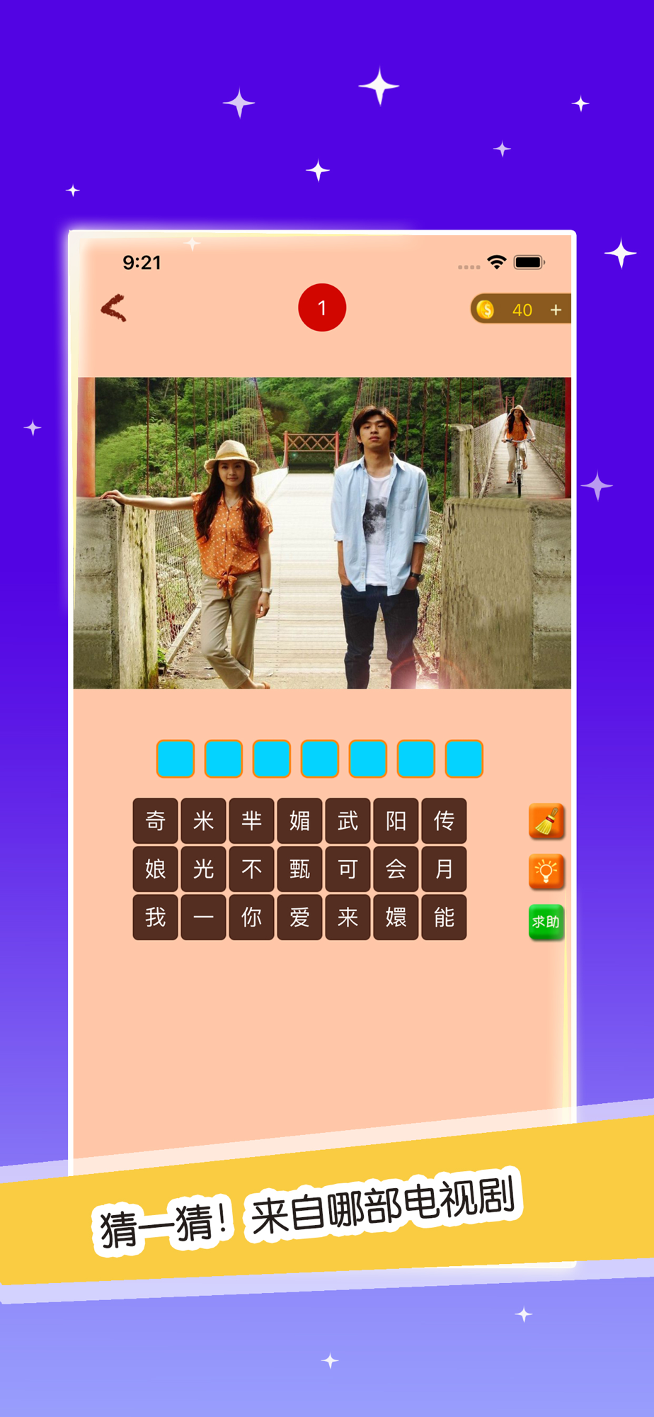1. 选择关卡,根据提示的图片,猜出正确的电视剧名字。正确即可进入下一关,错误就继续猜啦!
