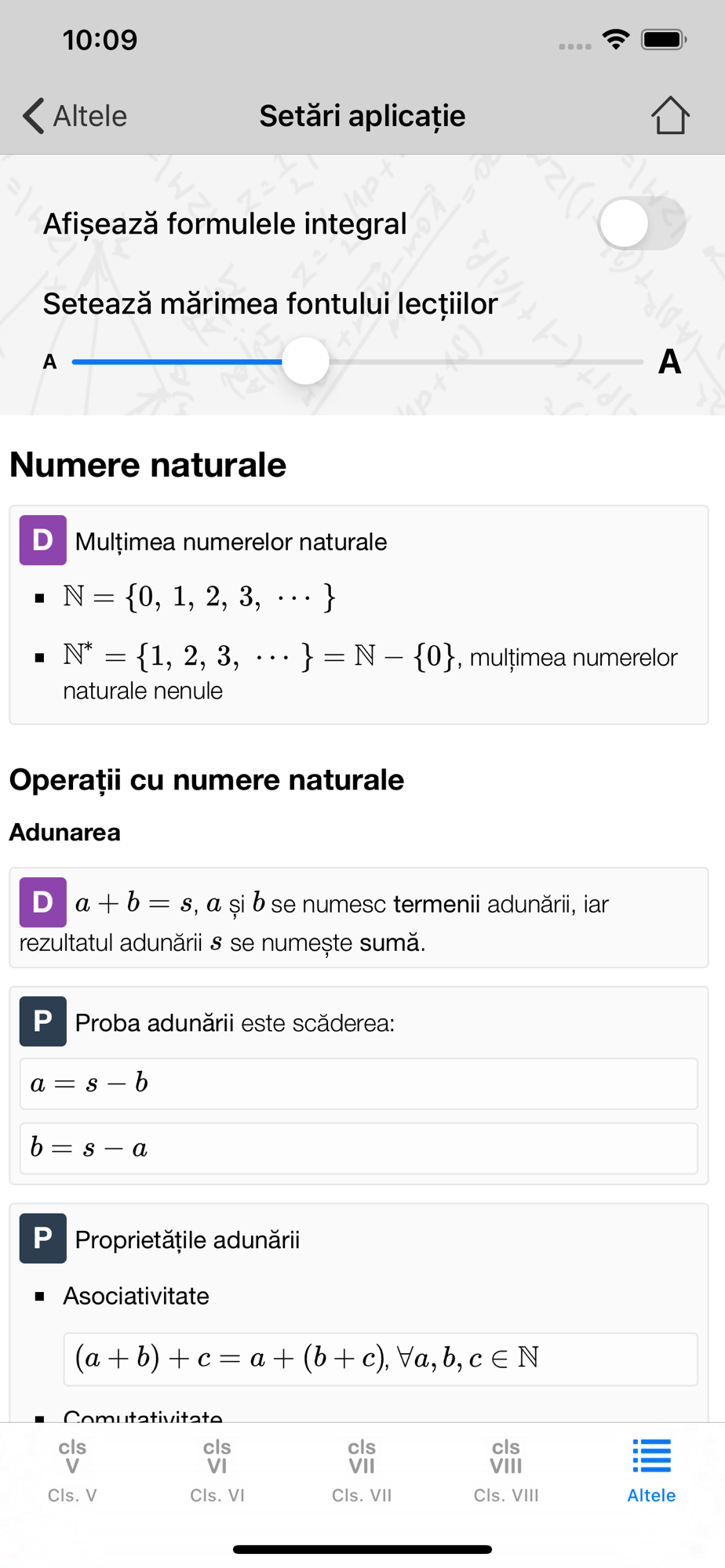 Formule matematice, teoreme, definiții, proprietăți, grafice, exemple și algoritmi de rezolvare - toate într-o singură aplicație la purtător!