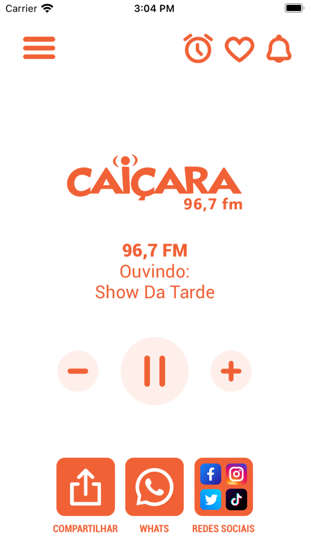 Aplicativo da Rádio Caiçara, uma emissora da Rede Pampa de Comunicação.