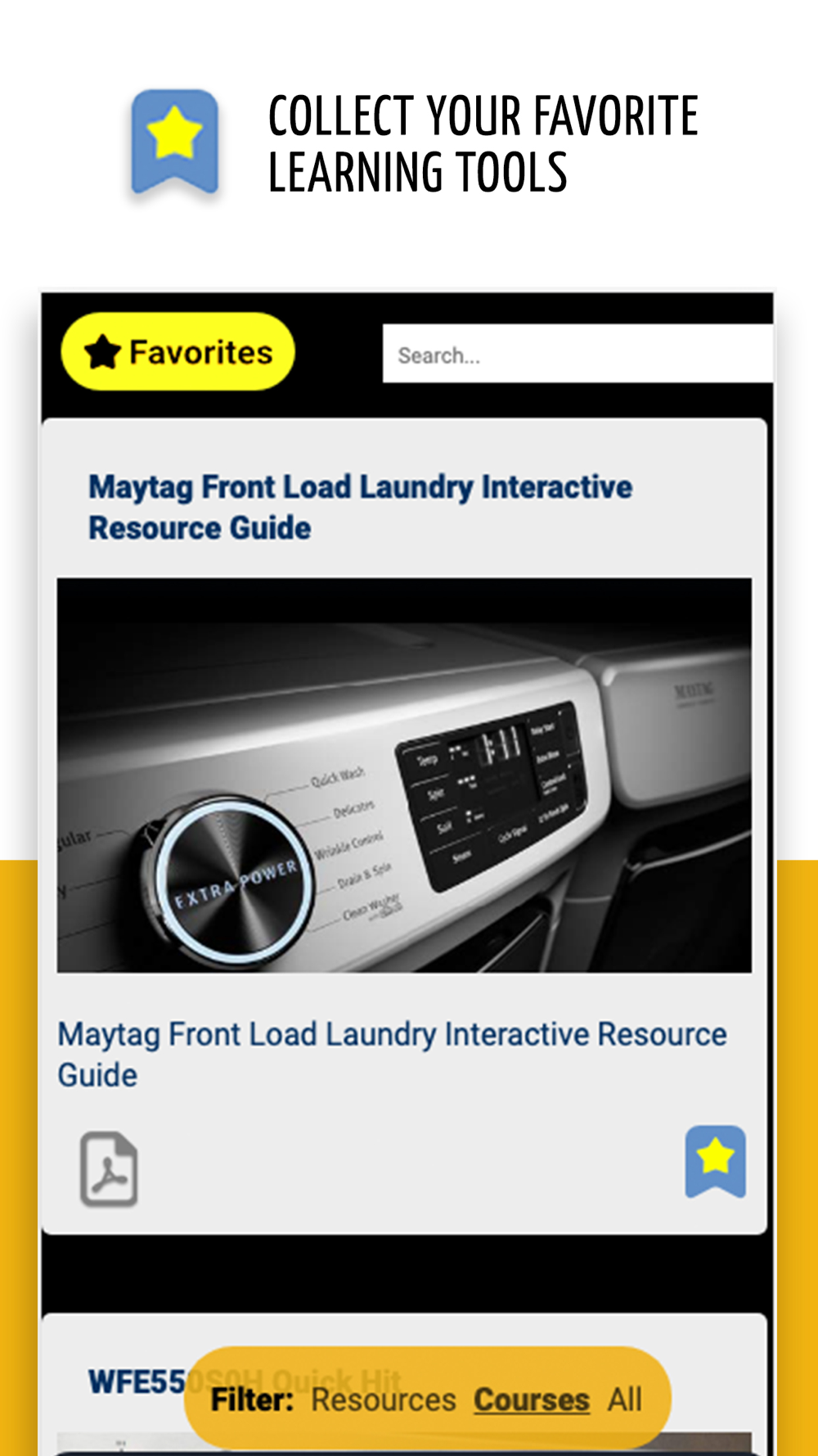 Get all the latest, feature-filled content for appliances across the KitchenAid®, Maytag®, and Whirlpool® brands. Our "Smart Search" tool gives you the ability to quickly browse all the training content offered, while our "Favorites" feature offers you the ability to collect resources and save them offline for viewing.
