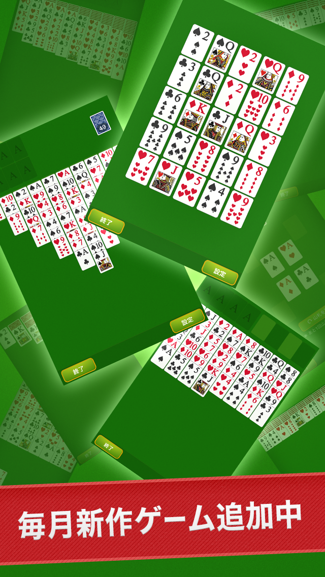定番人気のクロンダイクやフーセルから、全20種類以上のゲームを搭載!