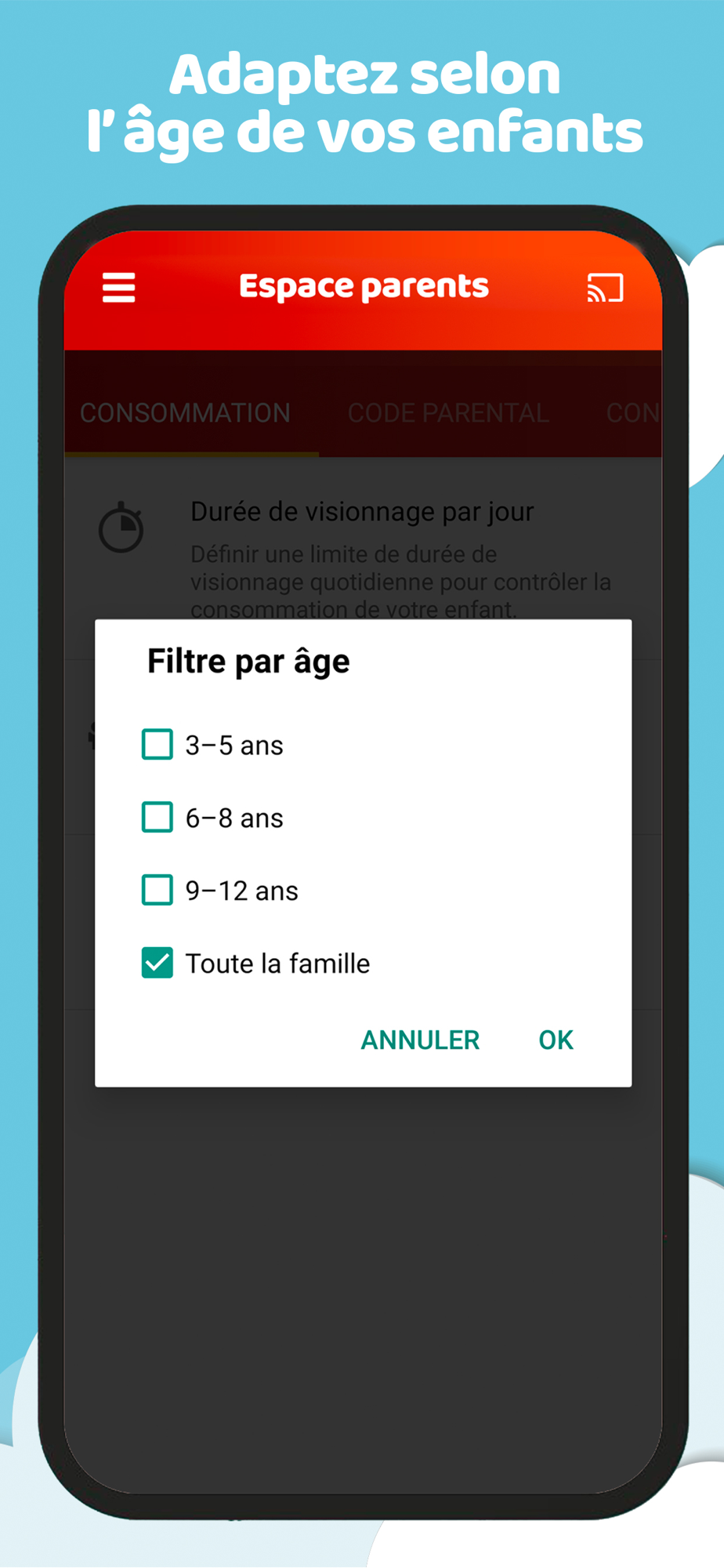 • Des filtres par tranche d'âge 3-5 ans / 6-8 ans / 9-12 ans.