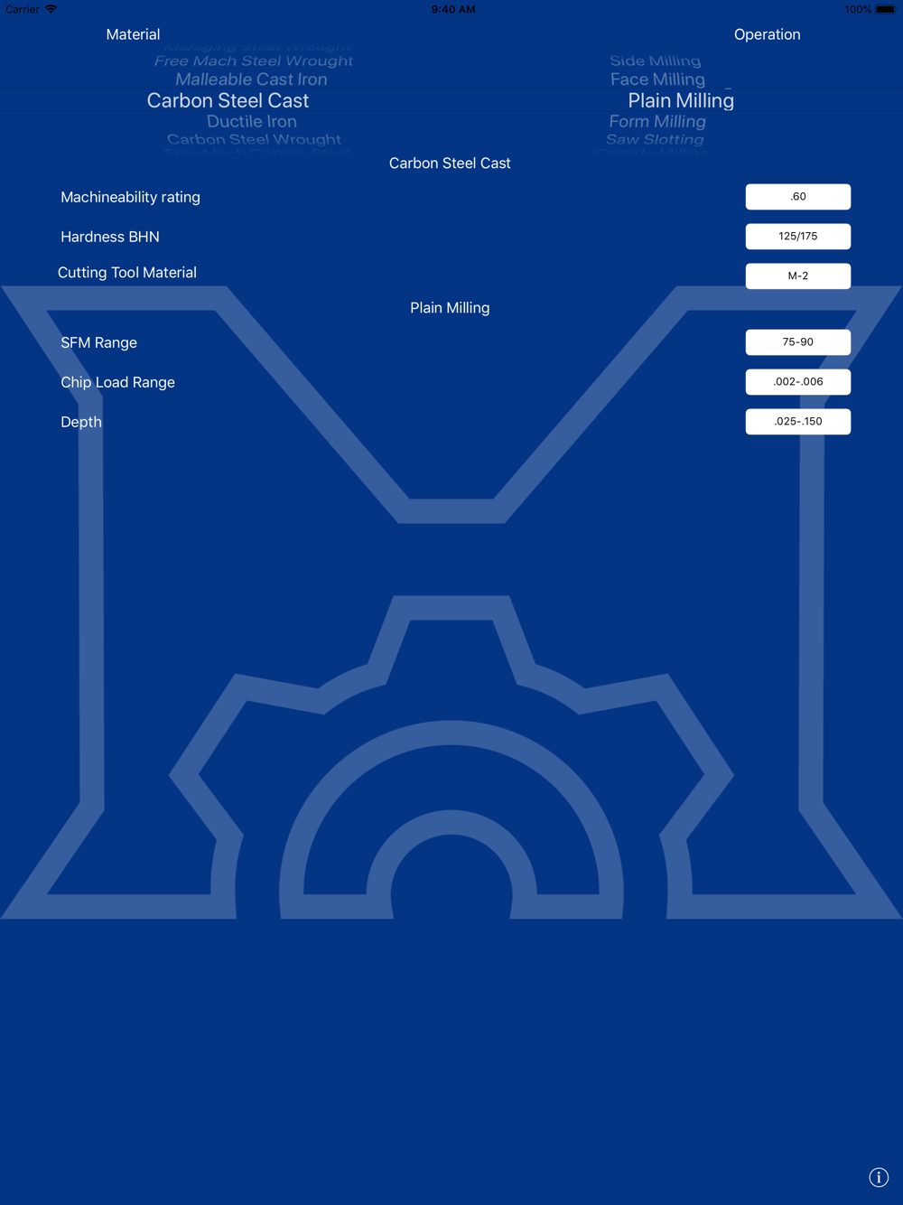 Machinability of a material can be defined as the ease with which it can be machined. Machinability depends on the physical properties and the cutting conditions of the material. This app list various materials and helps you determine what speeds and feeds as to which to cut the material.