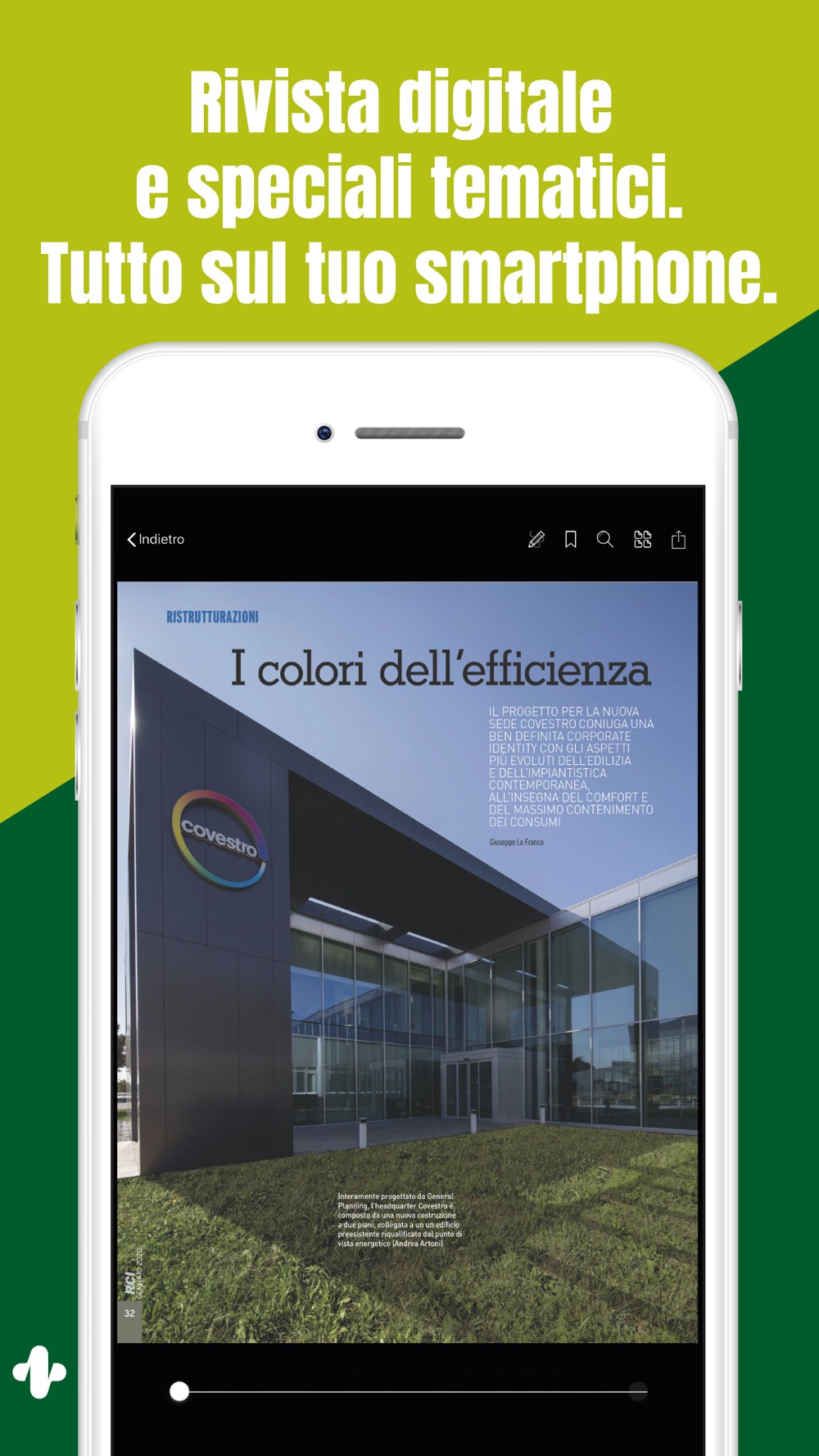 RCI è la più autorevole rivista italiana nel settore degli impianti di riscaldamento, climatizzazione, idronica e delle energie rinnovabili. RCI informa e aggiorna sulle tecniche progettuali e impiantistiche, l’evoluzione normativa, le innovazioni tecnologiche e i trend di mercato. L’attualità e l’attendibilità degli articoli e delle numerose rubriche la rendono particolarmente utile per l’aggiornamento professionale. I vasti consensi e l’interesse con cui viene seguita, fanno di RCI il mezzo più qualificante per tutte quelle aziende che desiderino pubblicizzare i propri prodotti su scala nazionale.