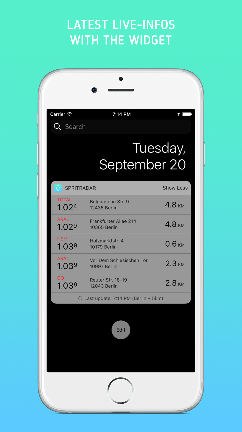 A clear overview of the current gas prices in your area is also presented in a widget in your notification center.