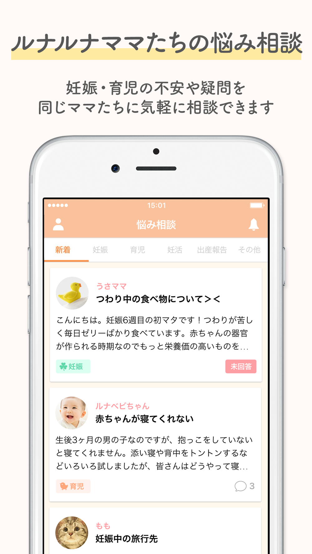 ルナルナ ベビーを使っているママ限定の悩み相談機能。