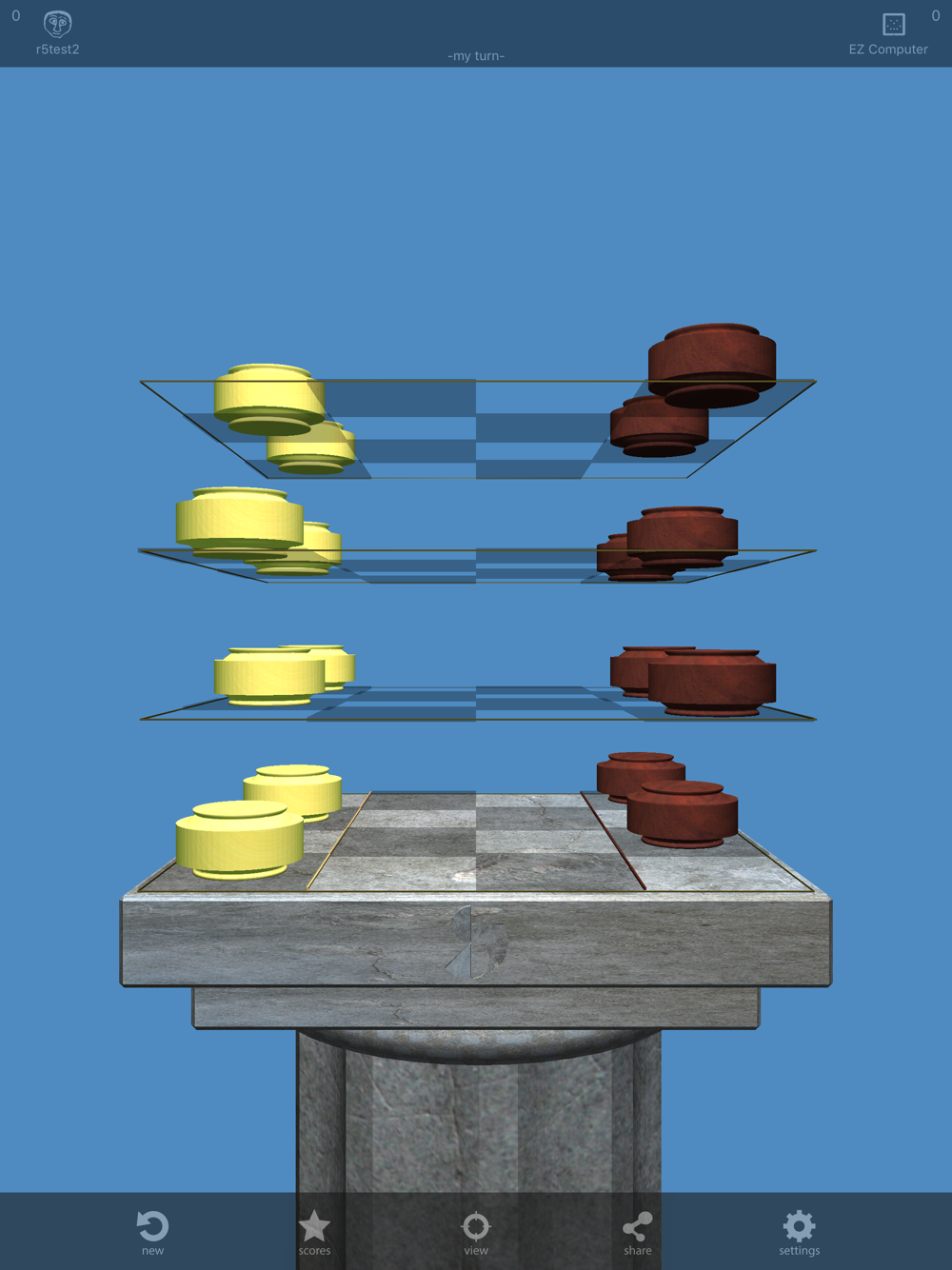 Similar to a traditional game of checkers, but played in a 3 dimensional space.