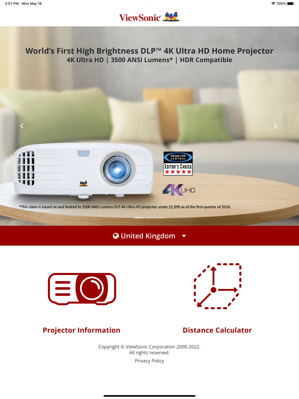 ViewSonic Projector summarizes the projector’s basic and advanced know-how to end users, installers, or distributors. It contains a bunch of practical information for choosing appropriate projectors in different scenarios. No matter small meeting room, middle classroom, or big hall, ViewSonic Projector tells you how far the projector should be placed according to the room ceiling height, projector’s screen size, aspect ratio, etc. Just input several figures, the result will be displayed in the simulation scenarios with measurement. You can use finger to adjust the distance instantly.