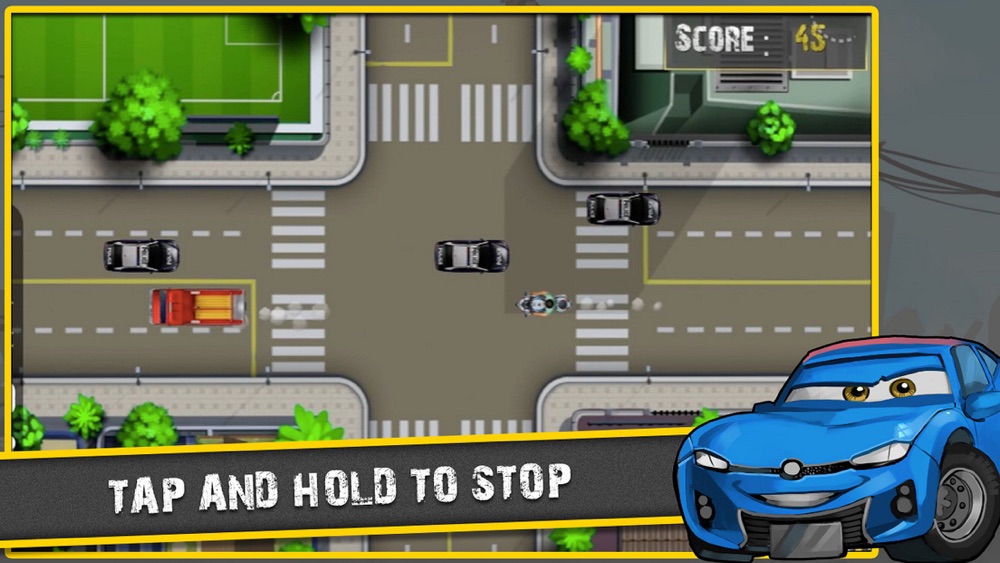 - Tap cars or motorcycles, hold to stop or swipe to move faster