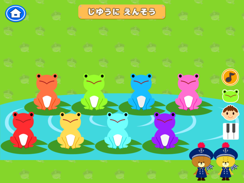 童謡5曲を収録、指示通りに音をならすと童謡の演奏ができます。