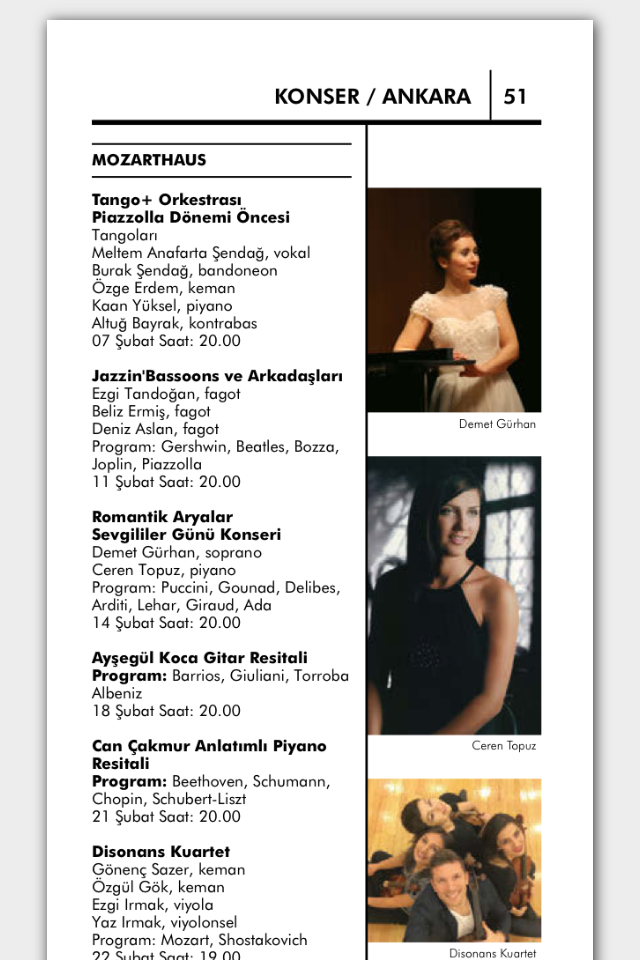 Kültür Sanat Haritası, yalın, renkli, kolayca taşınabilen, saklanabilen kendine özel ebatı ile aylık bir kültür sanat rehberidir. Ve markasını kentli olan ve kentini seven kişinin rehberi olarak konumlandırır. Kentin kültür sanat gündemini merak eden, yakından takip edenlerin kısacası kentli için bir yaşam rehberidir.