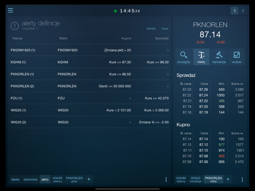 - rozbudowaną, konfigurowalną tabelę notowań,