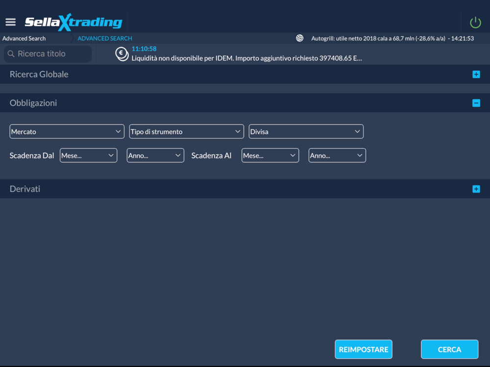 Attenzione: Sella Xtrading resterà attiva fino a fine settembre dopodiché verrà sostituita da Sella Trader, la nuova app di Banca Sella dal design semplice e intuitivo.