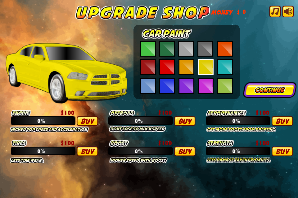 - Speed, Acceleration, Brake and Handling can be improved by updating car level