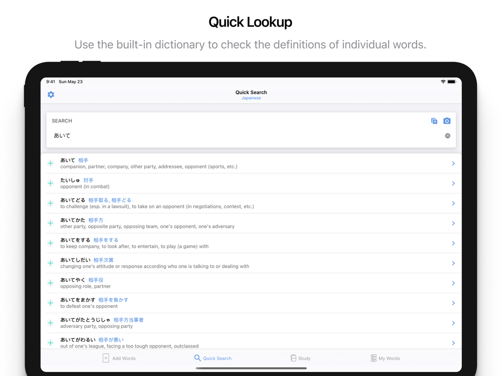 When you find a new word, grab the entire sentence. You can paste from another app or use the camera to capture text from anywhere.