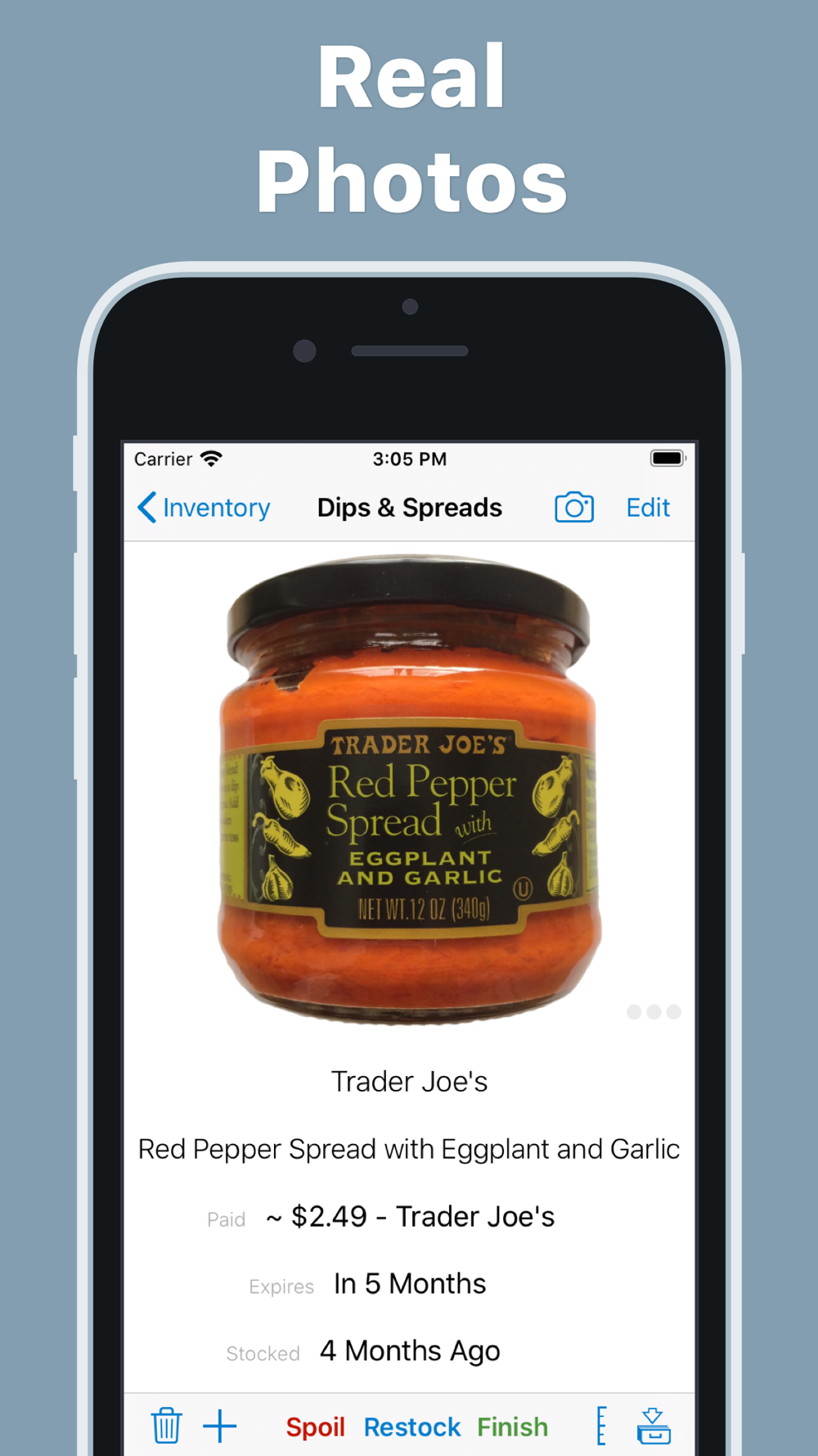 Pantry Check is the easiest way to manage the groceries you buy and use. With seamless cloud sync, multiple device login and intuitive UI, it's never been easier to plan meals, do your grocery shopping, track best by dates, avoid food waste and stay on top of your budget.