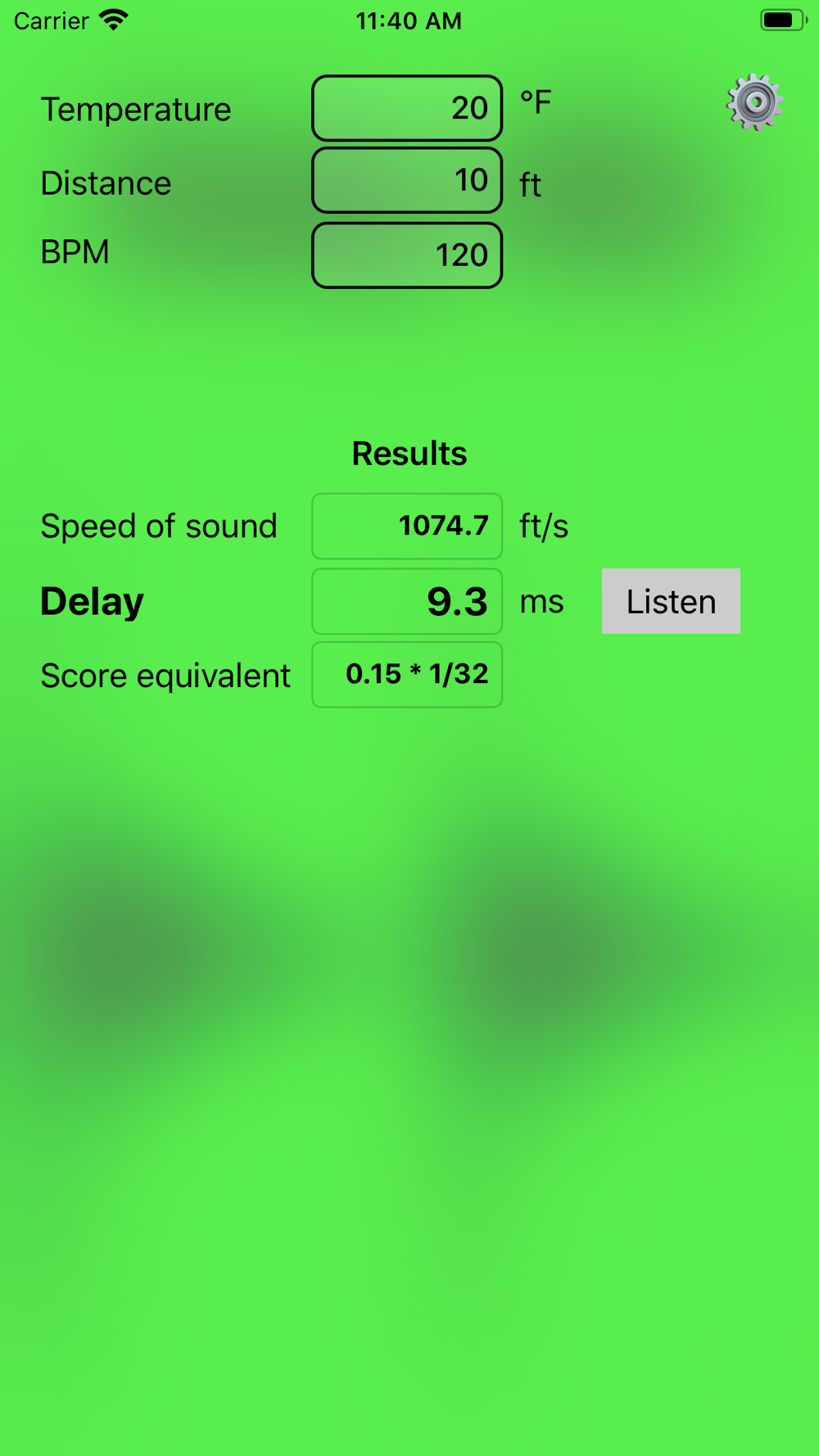 Using a distance, score tempo in bpm and the room temperature Delay Wiz gives you following results: