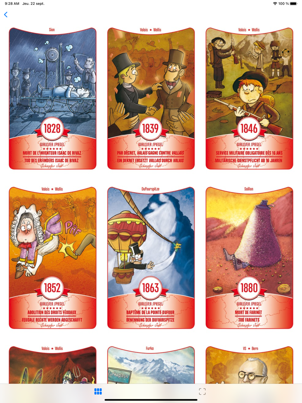 A l'occasion du 200ème anniversaire de l'entrée dans la Confédération Suisse du Canton du Valais, un jeu de cartes historique fut édité. Cette application permet de retrouver le texte historique associé à chacune des cartes.