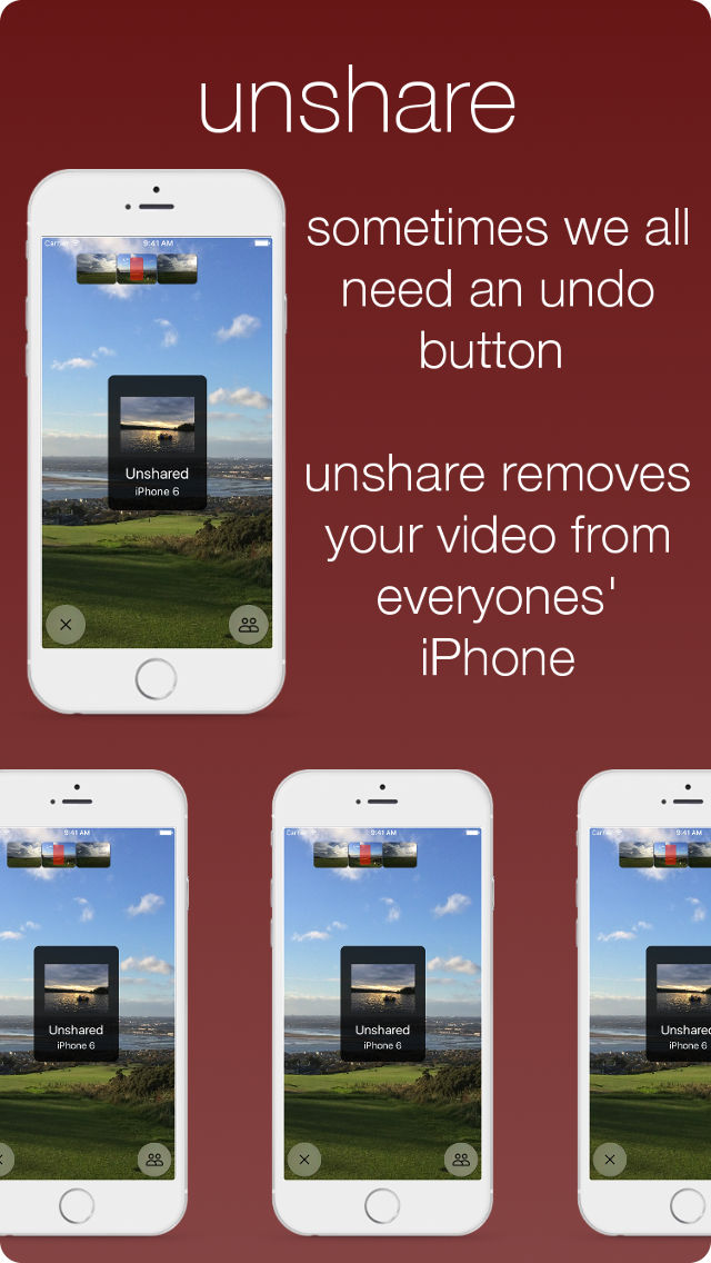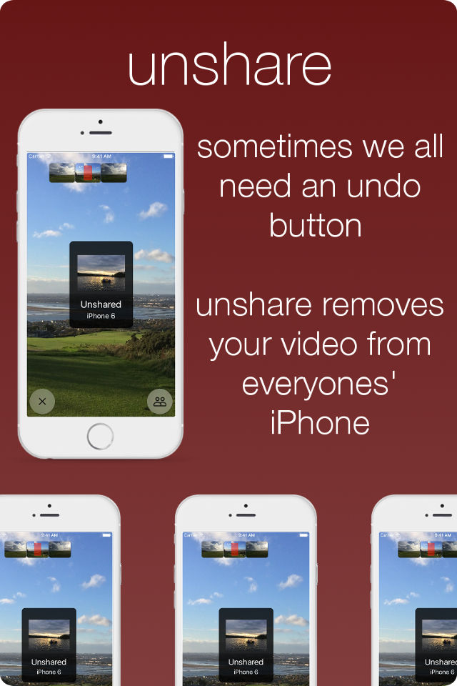 After you share your photo or video, it’s still yours. Allow your friends to save it or not. When you are done sharing, you can unshare your it. If you close wevew and walk away, your photos are unshared automatically in about 15 minutes.