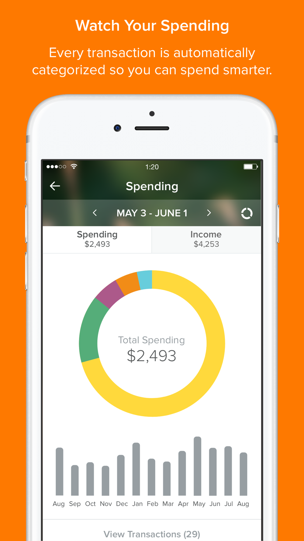 Finance Central’s award winning design makes managing money not only easier and more convenient - but a lot more enjoyable and exciting as well. Not only will you be able to see all your financial data in one place, you will be able to visualize that data in meaningful and engaging ways on your mobile device.