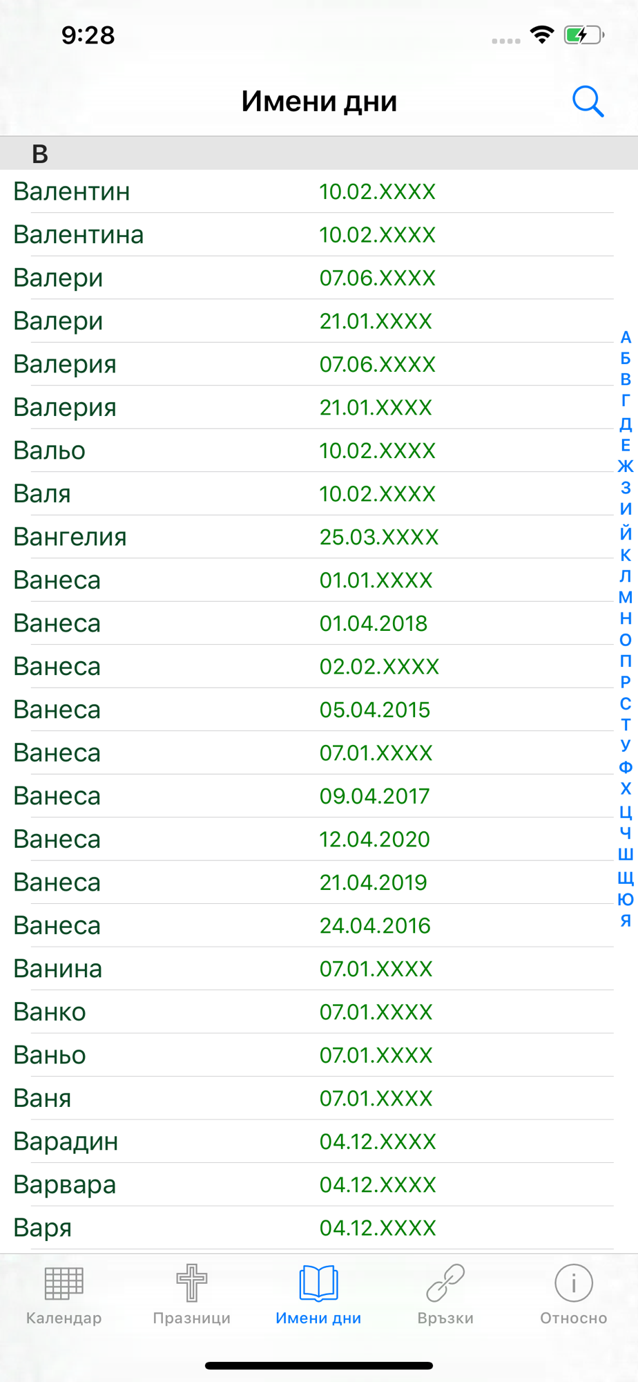 • Имени дни;