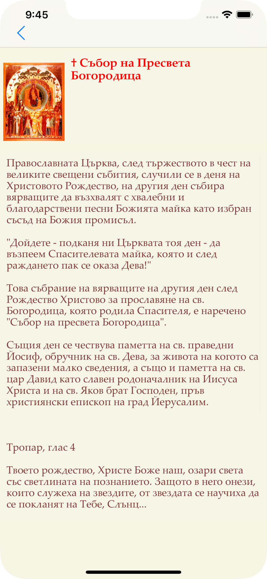 • Църковен календар за годините 2015-2024, с всички църковни празници в България, с описания и жития на светците, които се почитат;
