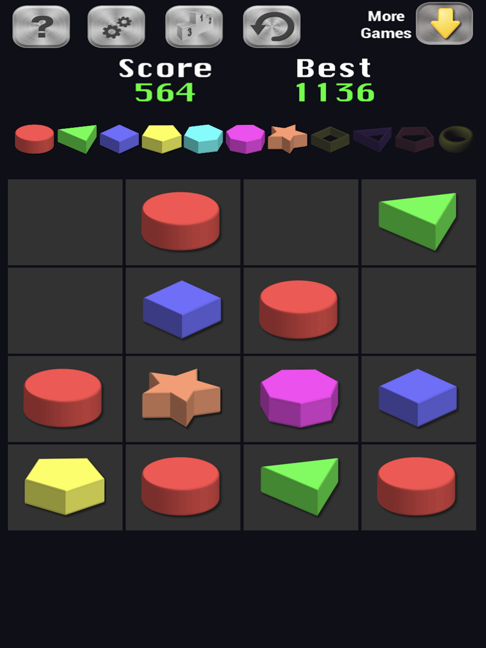 Slide (Up, Down, Left, Right) to move the shapes. When two shapes equal, they merge into one. Get all the figures and win!
