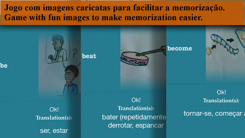 -Jogo com imagens caricatas para ajudar a memorizar os verbos com maior rapidez