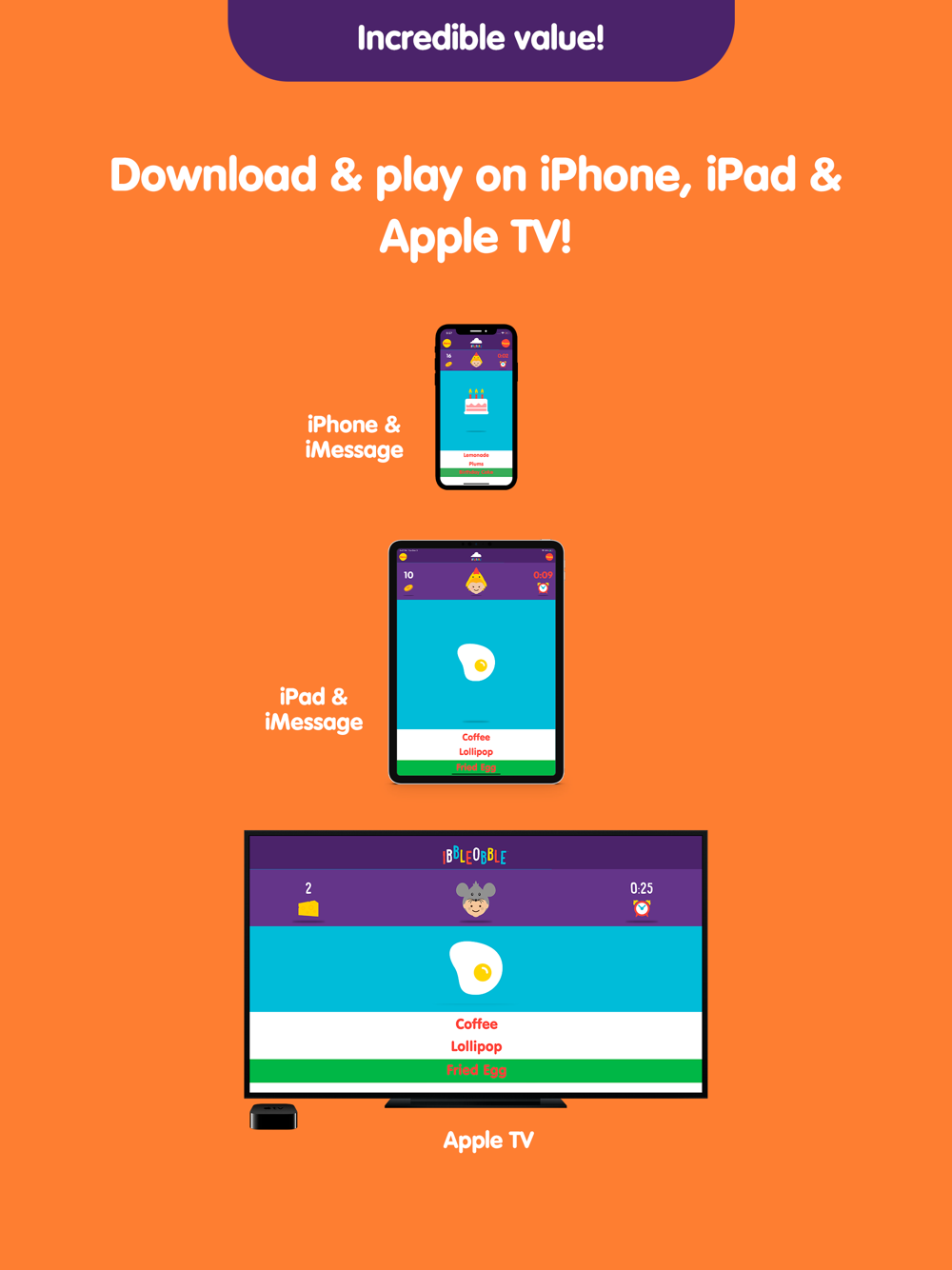 • Universal purchase (Get 'Words with Ibbleobble' for your Apple TV and for ALL your iOS devices and now your Mac with one single purchase!)