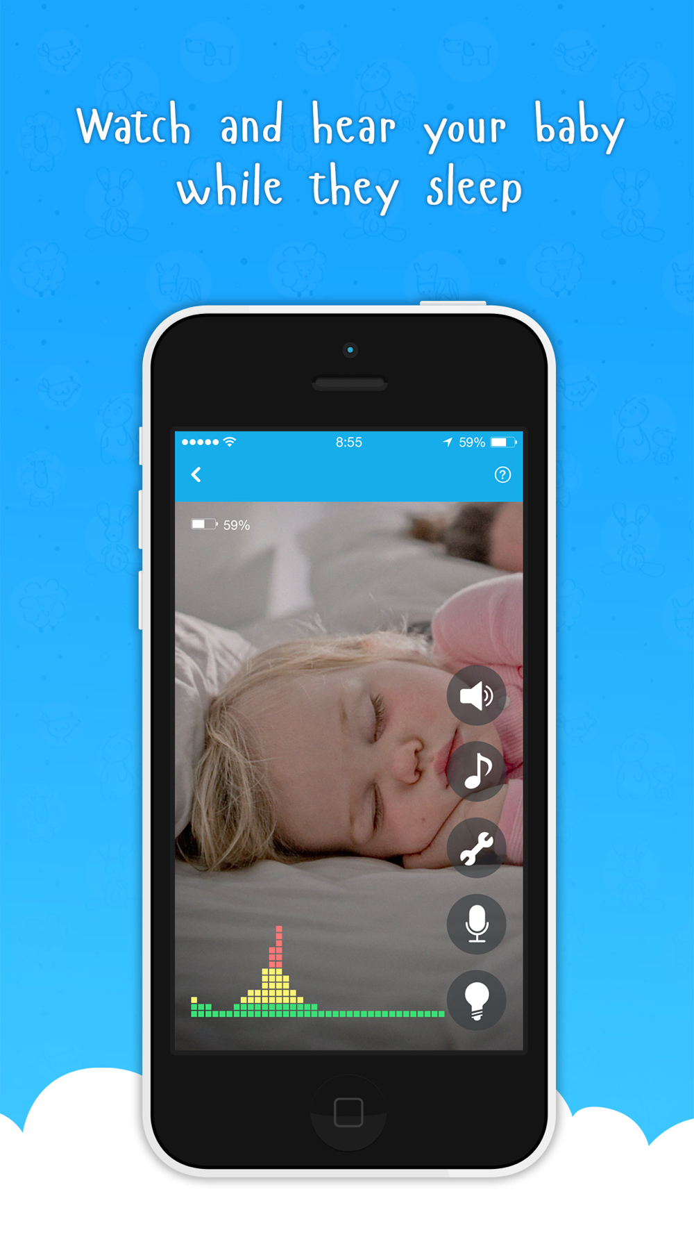 • Ahgoo visualizes the noise level in baby's room for you not to miss the slightest rustle.