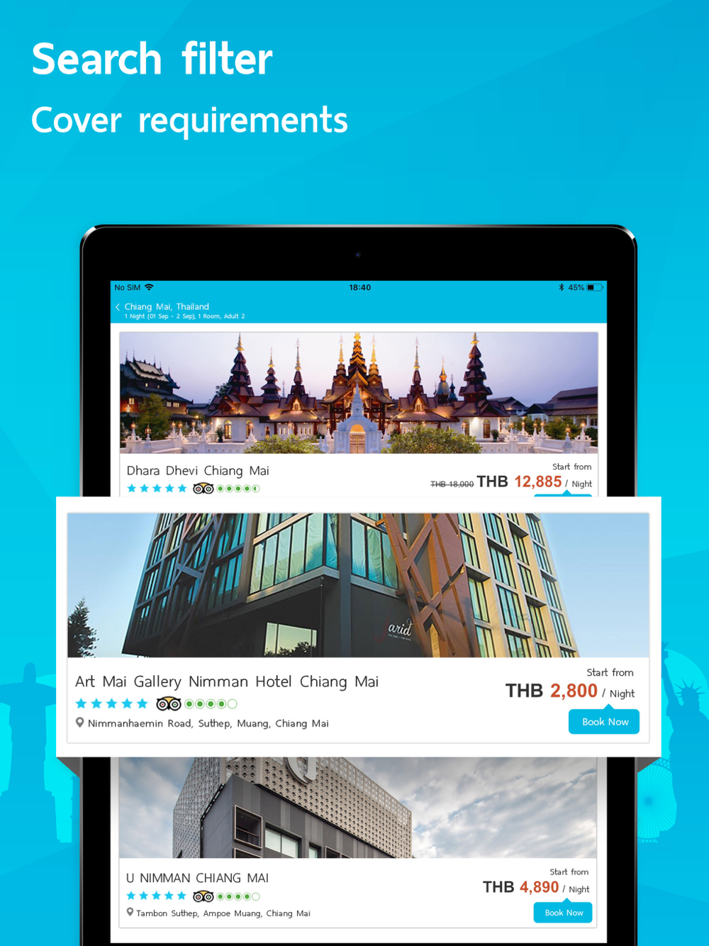 - Unlimited hotel offer with more than 1,200,000 properties all over the world in our database.