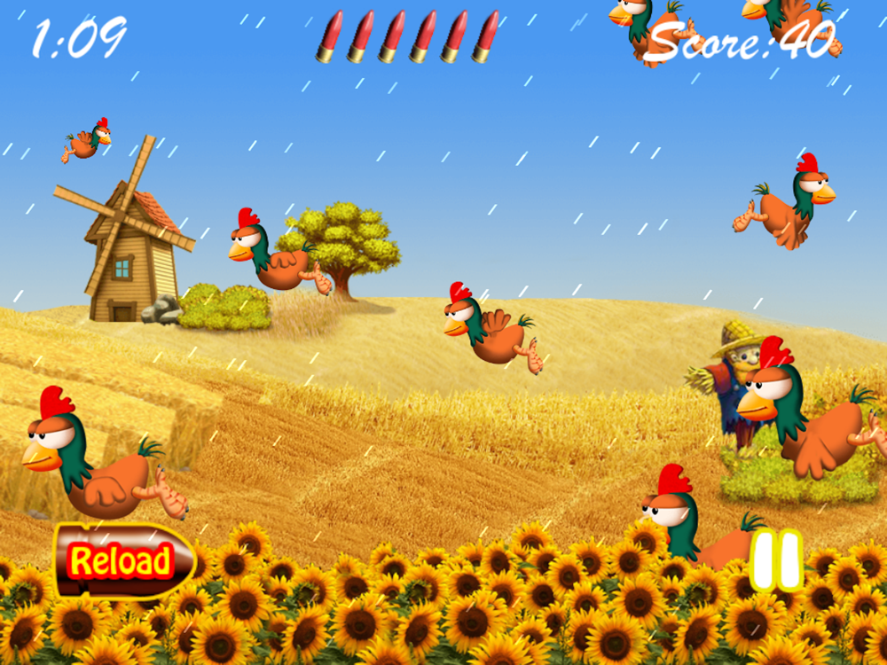 Trong vòng 90s, hãy cố gắng tiêu diệt được càng nhiều gà càng tốt. Càng bắn chính xác, số điểm thưởng cho bạn càng nhiều. Trong màn chơi còn nhiều bí mật giúp bạn tăng thêm số điểm của mình, hãy cố gắng tìm ra chúng nhé. Đồ hoạ đẹp, cách chơi đơn giản nhưng không kém phần hấp dẫn, bắn gà hứa hẹn sẽ mang lại những phút giây giải trí thú vị. Nào, còn chờ gì nữa, hãy trở thành thợ săn gà và so tài với tất cả bạn bè trên thế giới thôi!