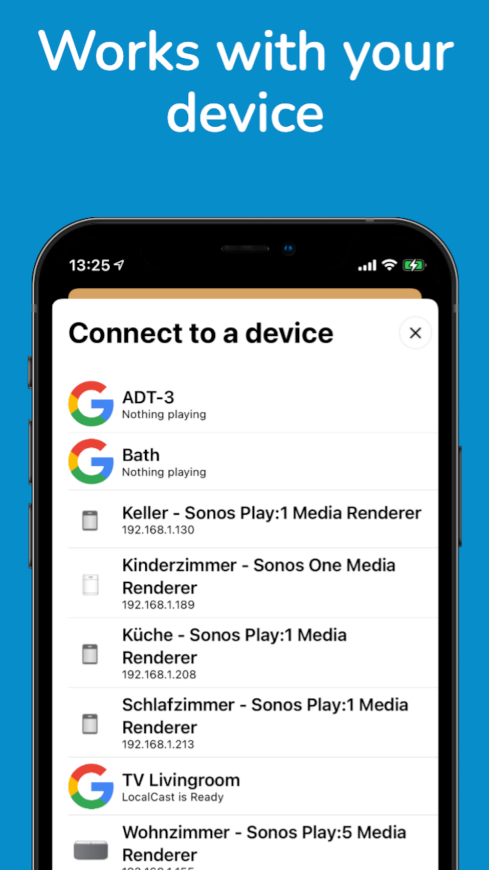 Cast webvideos, local videos, music or pictures to a Chromecast, Apple TV or Smart TV.