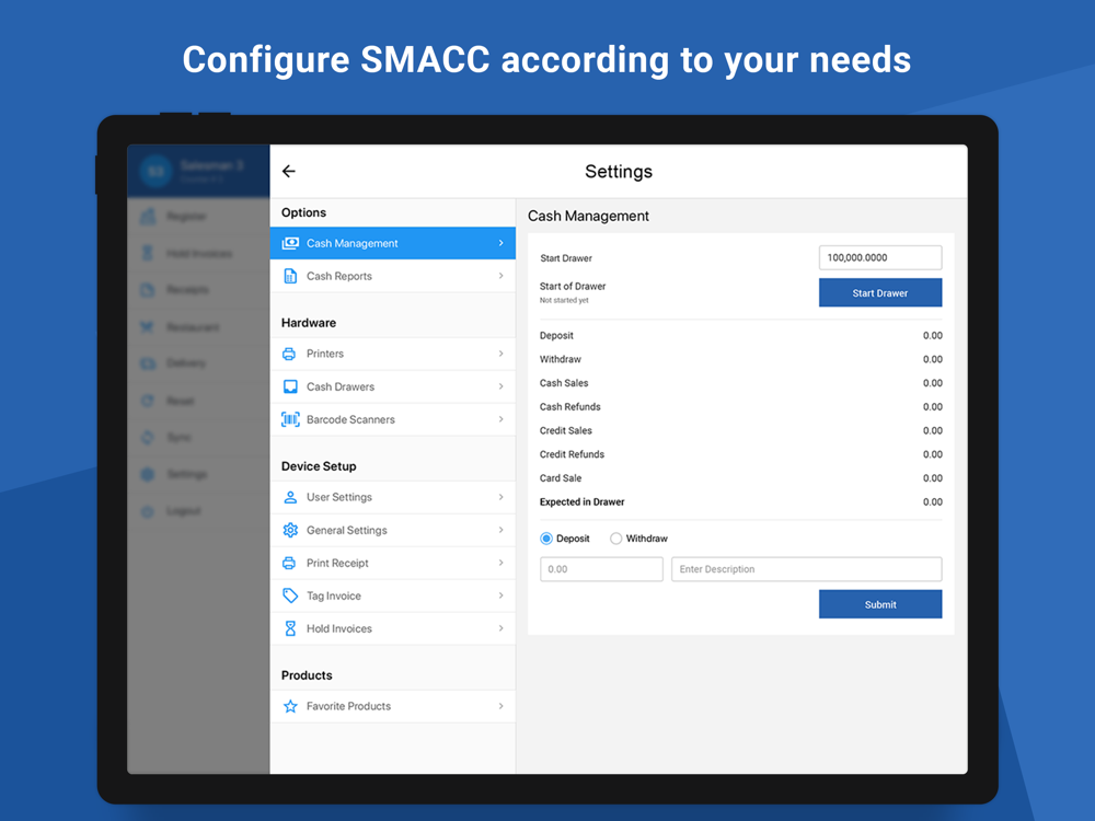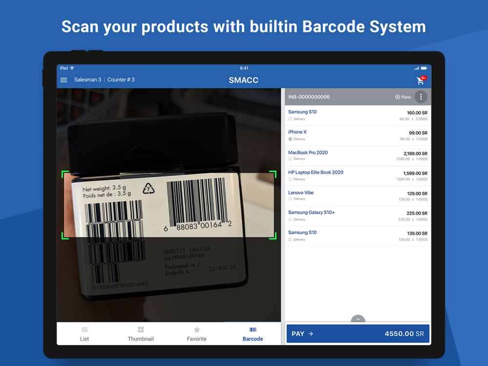 hardware integration with barcode scanner , Printer and CashDrawer to make your iPhone and iPad a complete POS solution.
