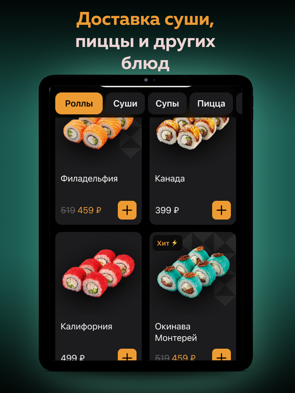 Большой выбор суши и роллов – вы можете заказать множество блюд прямо из наших ресторанов!