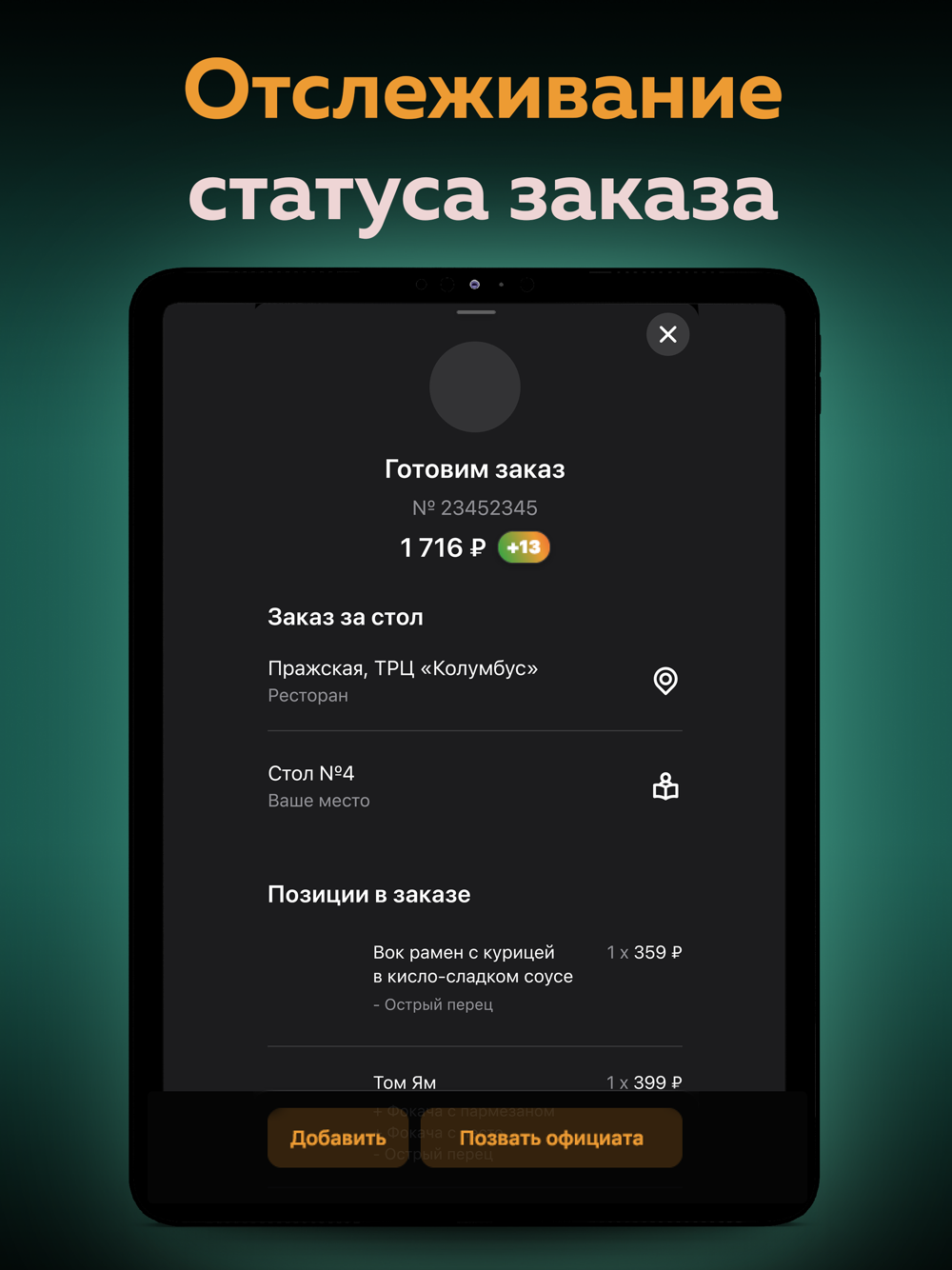 Быстрое и удобное оформление заказа – ваш заказ сразу же поступит на кухню ресторана!