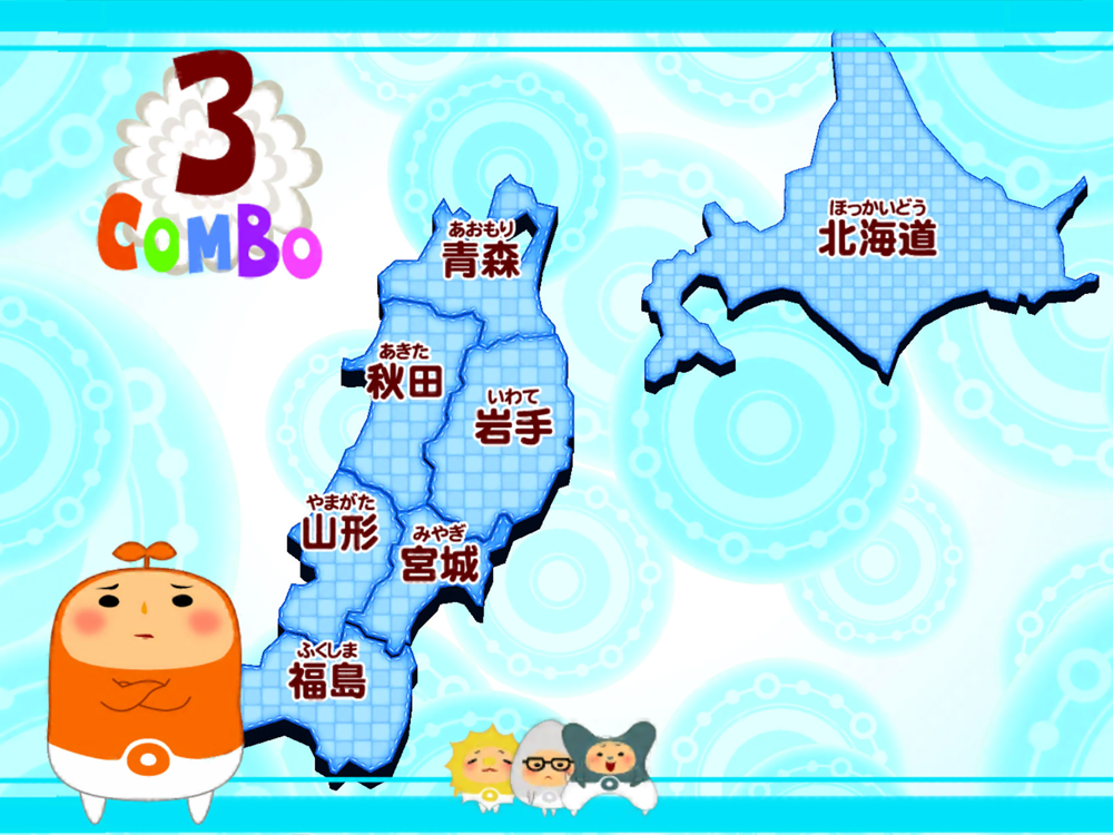 都道府県の暗記を一気に楽しく暗記できる学習アプリ!可愛いキャラクターが北海道から沖縄までの47都道府県の名前、位置、特徴をリズムに乗って教えてくれる。