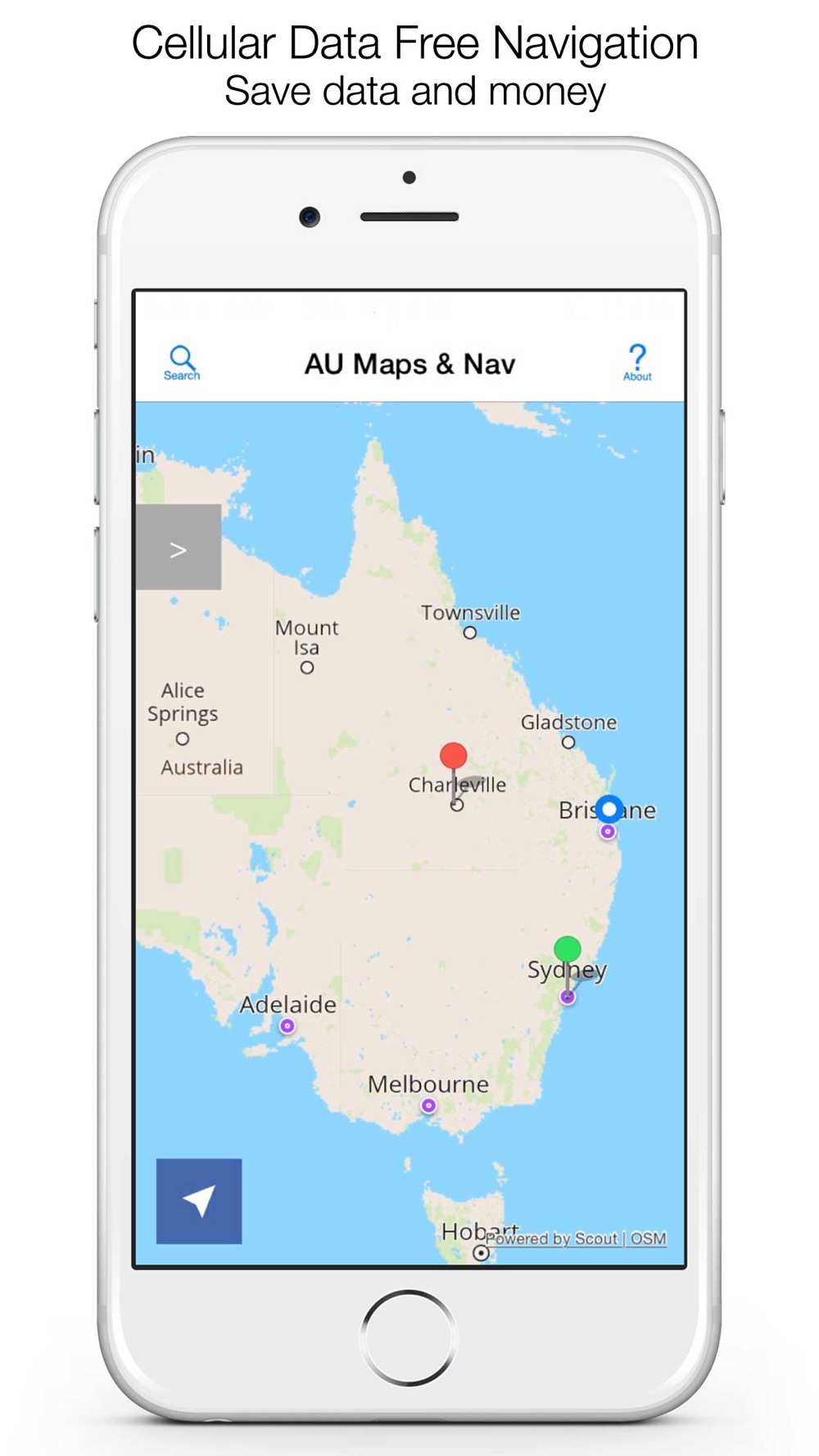 • All Australia map data stored on your iPhone or iPad - no download costs for mapping or navigation