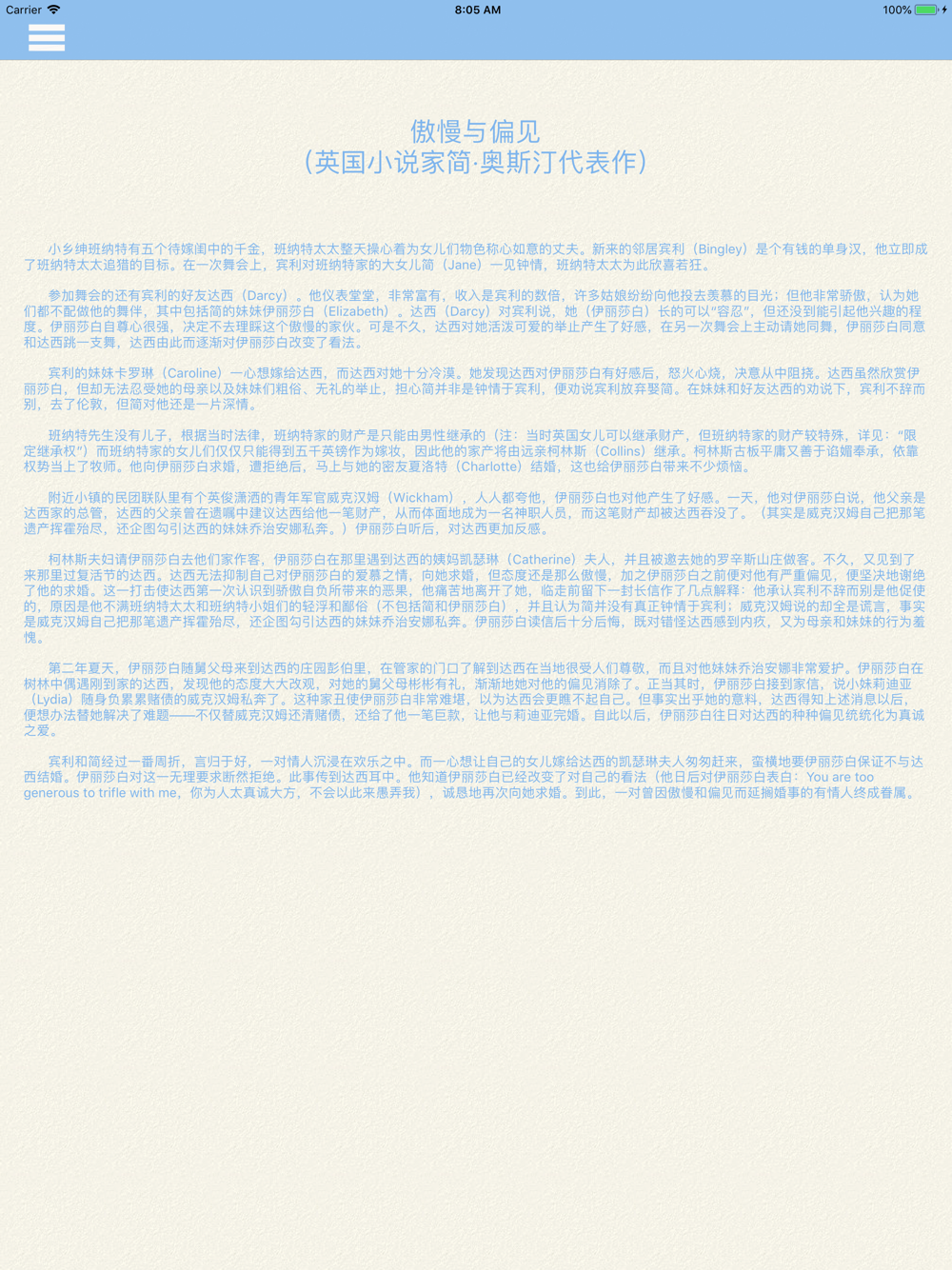 《傲慢与偏见》是简·奥斯汀的代表作。小说讲述了乡绅之女伊丽莎白·班内特的爱情故事。这部作品以日常生活为素材,一反当时社会上流行的感伤小说的内容和矫揉造作的写作方法,生动地反映了18世纪末到19世纪初处于保守和闭塞状态下的英国乡镇生活和世态人情。并多次被改编成电影和电视剧。