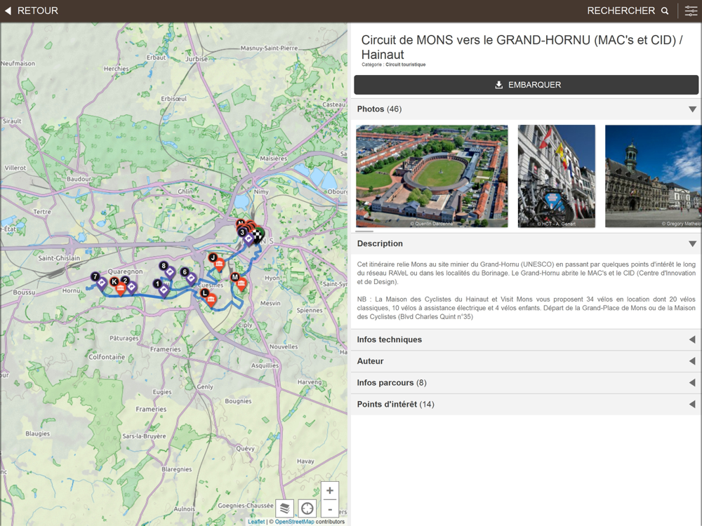 Embarquez des itinéraires touristiques sur votre mobile et laissez-vous guider à travers les richesses naturelles et patrimoniales du Hainaut. Avec cette application, votre téléphone géolocalisé vous guidera en temps réel sur les routes et circuits touristiques sélectionnés par Hainaut Rando. Toutes les possibilités d’hébergements, de restauration et de visites sont intégrées à cette application.