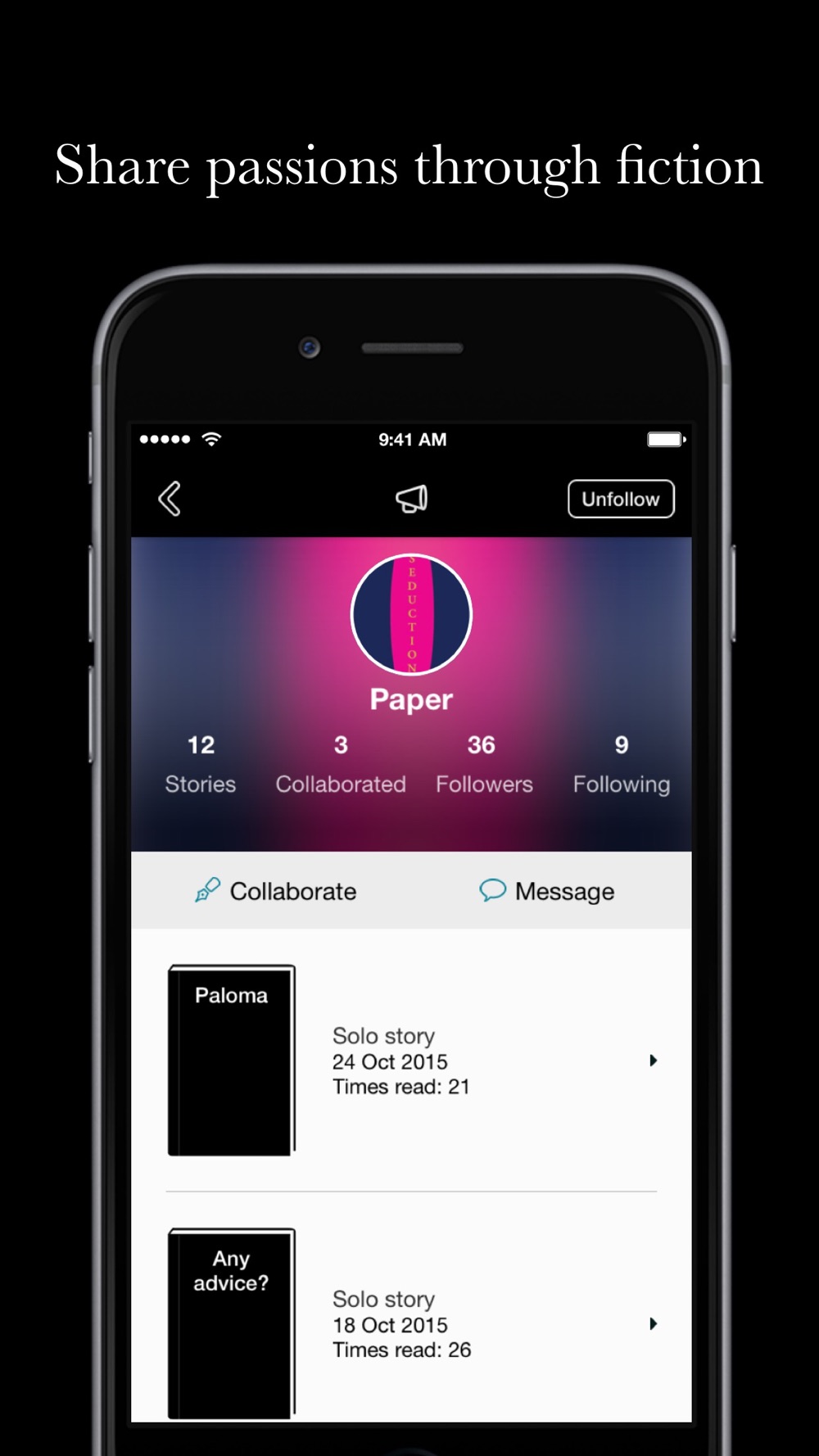 - Collaborate in short 280 character turns with up to 3 people on a short story