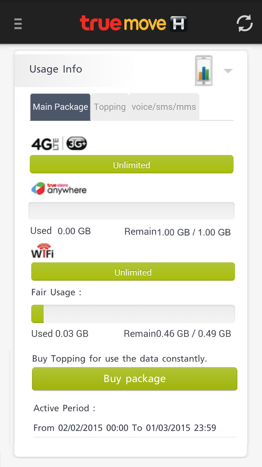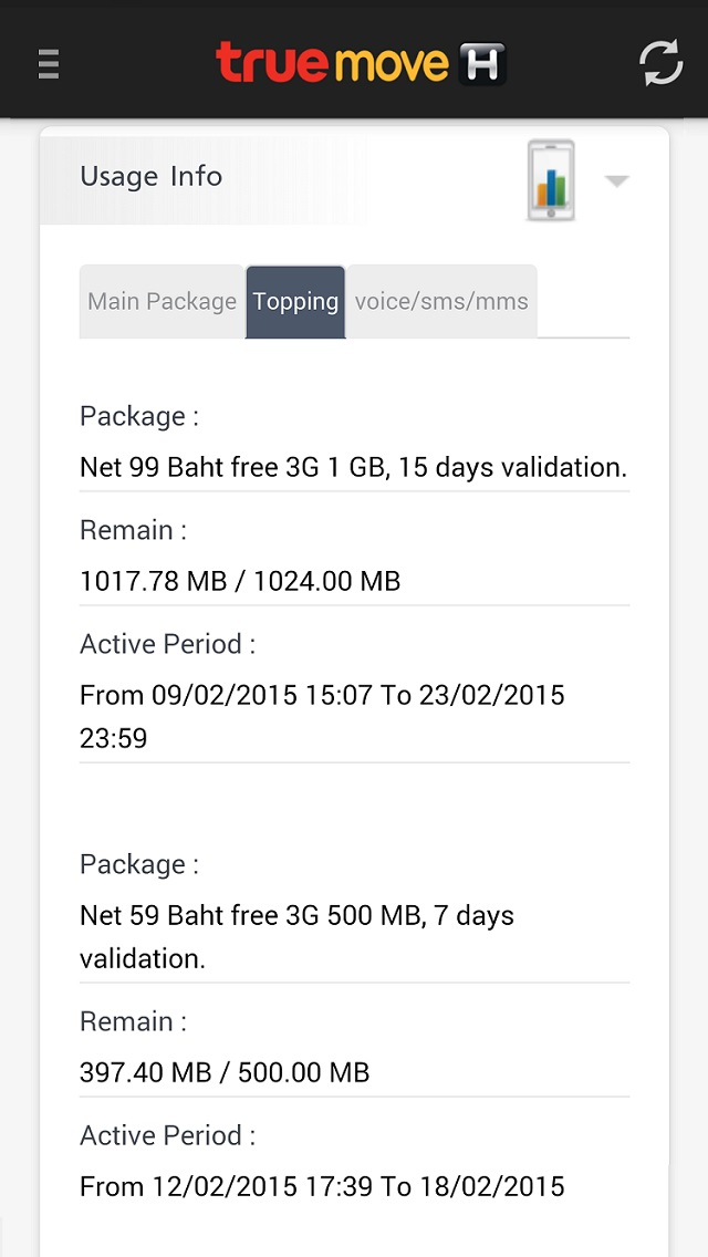 H Pack is the service to help Truemove H customers check usage of mobile internet, WiFi, voice, sms/MMS ,view current promotion or add internet package to speed up after use over fair usage volume. Including recommend suitable packages and privilege to customer.