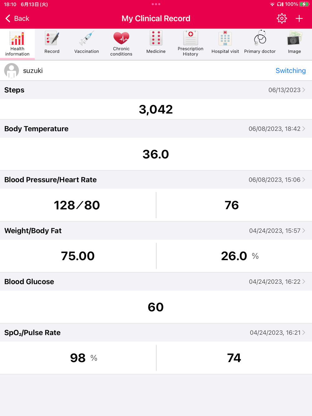 You can also manage health information (blood pressure, weight, steps) in conjunction with OMRON connect and health-app.