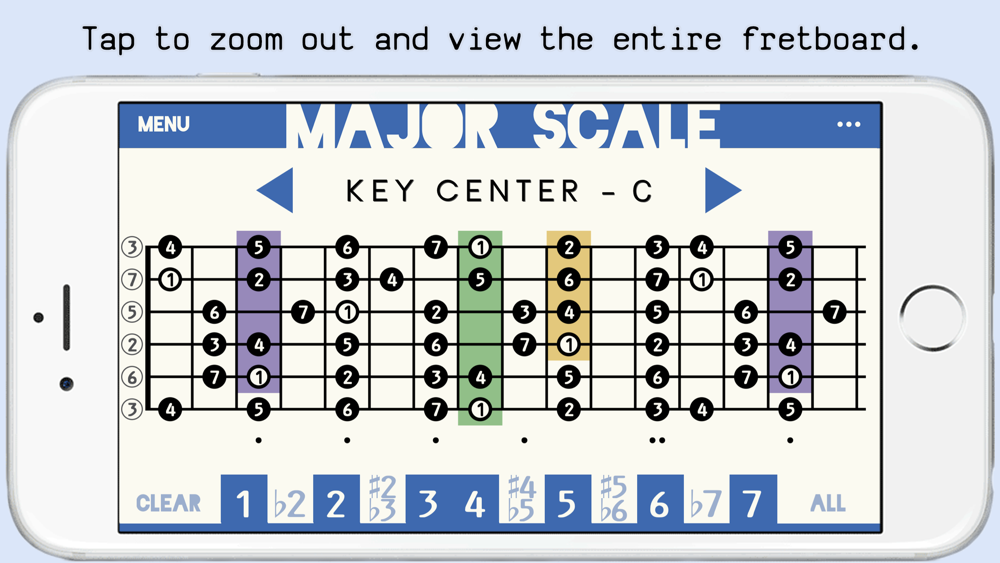Guitar Note Atlas is an interactive map of the guitar designed to help players of all levels better visualize the layout of the notes on the fretboard. It serves as a perfect practice aid for learning the geography of the guitar as well as understanding the modes of the Major Scale, Melodic Minor, Harmonic Minor, and Harmonic Major. Flexibility and interaction allows for ultimate creativity. You can select any combination of notes you want to see right on the main screen, or pick a scale from the drop-down menu. Switch quickly between all 7 positions or tap the diagram to zoom out and view the entire fretboard at once. (The iPad version shows both views simultaneously.) Features: - Bass Guitar Mode - Left Hand Mode - Change keys - Native iPad version (buy once and use on all devices) - Flip diagram upside down - Show/Hide scale degree numbers -Show/Hide colored-in anchor frets Included in the app is a tutorial to get you started (both right- and left-handed versions).